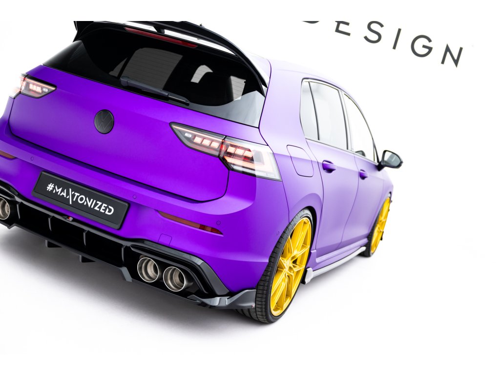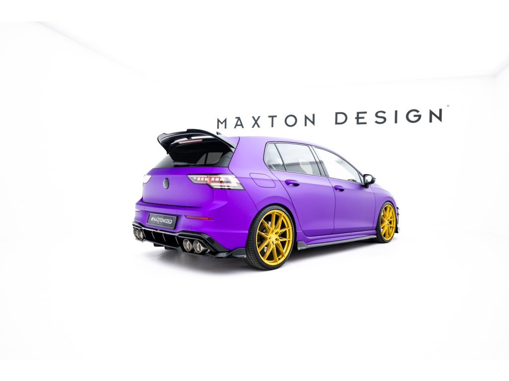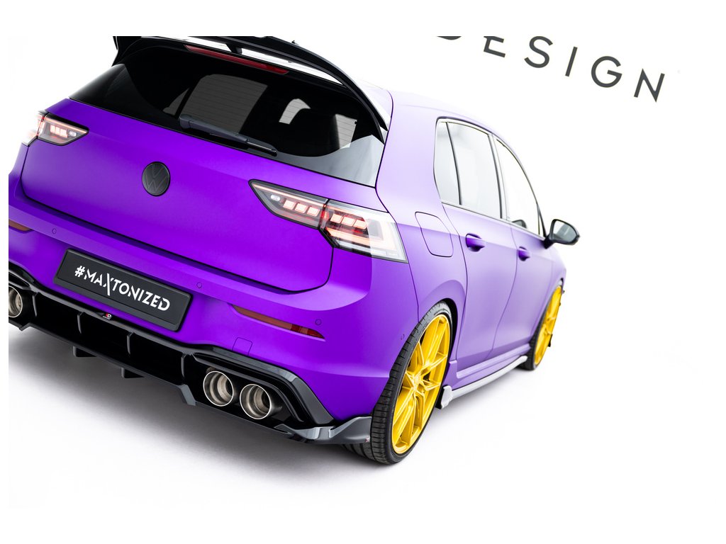 Maxton Design spoiler pod zadní nárazník s žebrováním v.1 pro vozidlo Volkswagen Golf R Mk8, Mk8 Facelift . Povrchová úprava spoileru černý lesklý plast ABS.