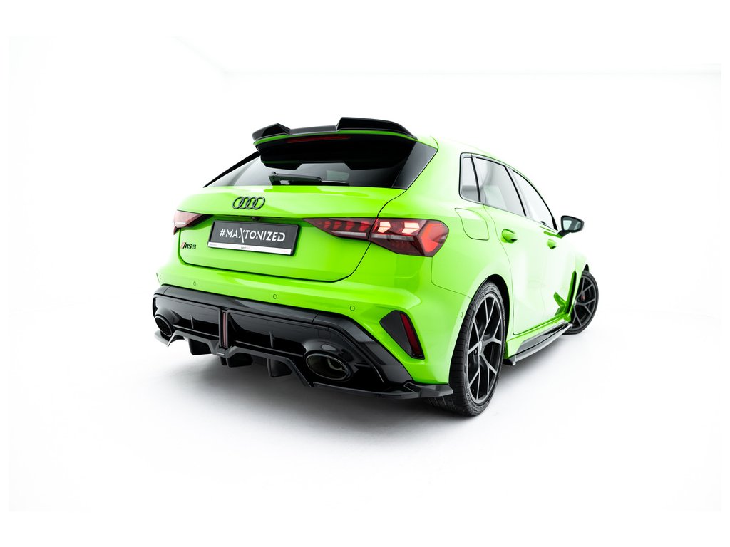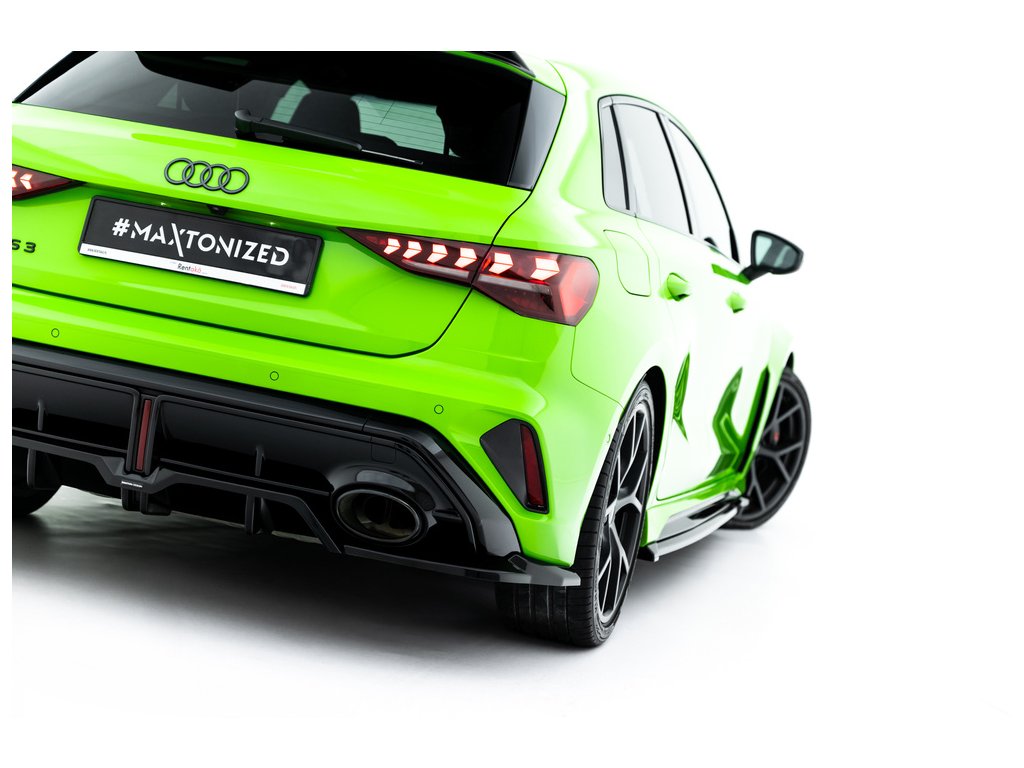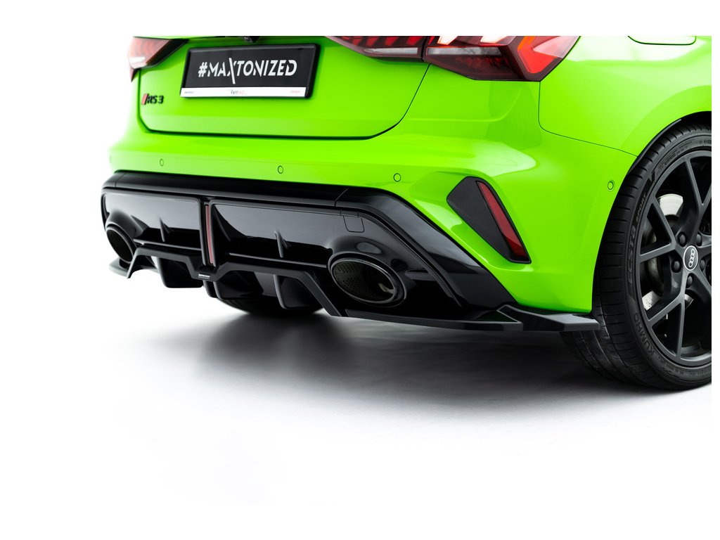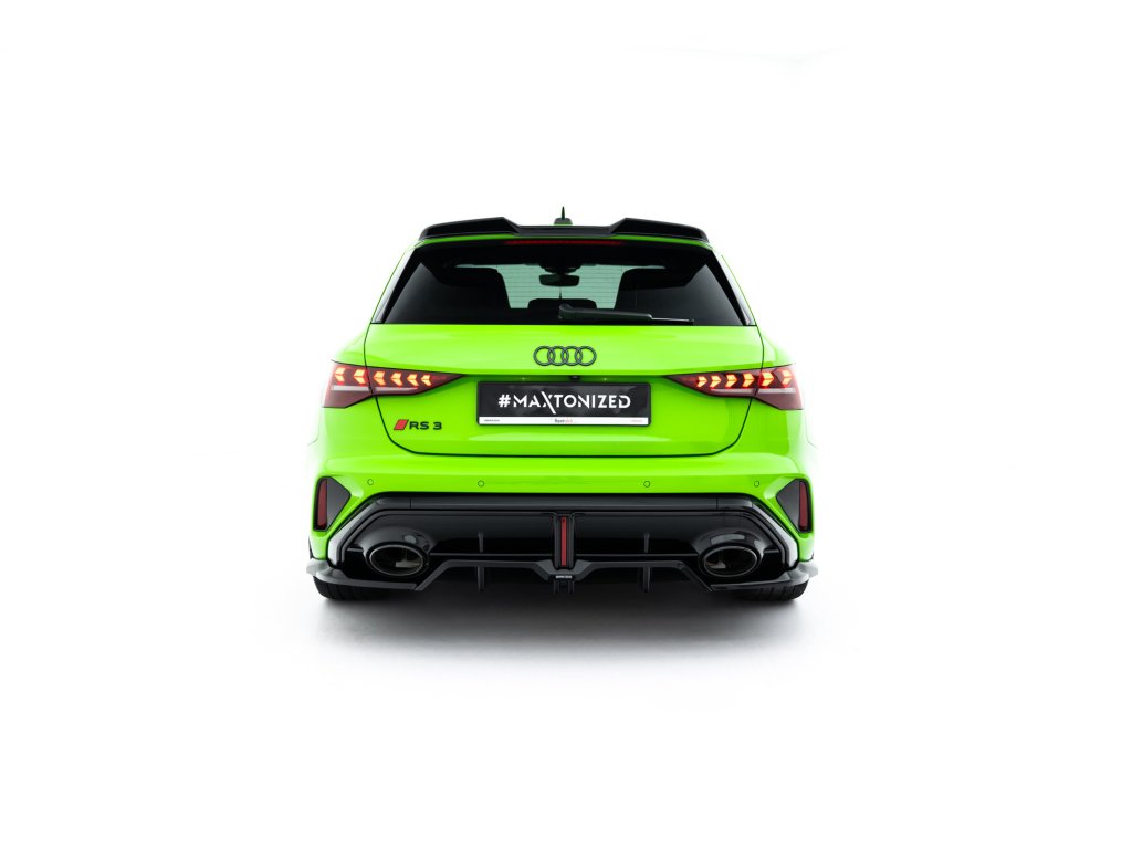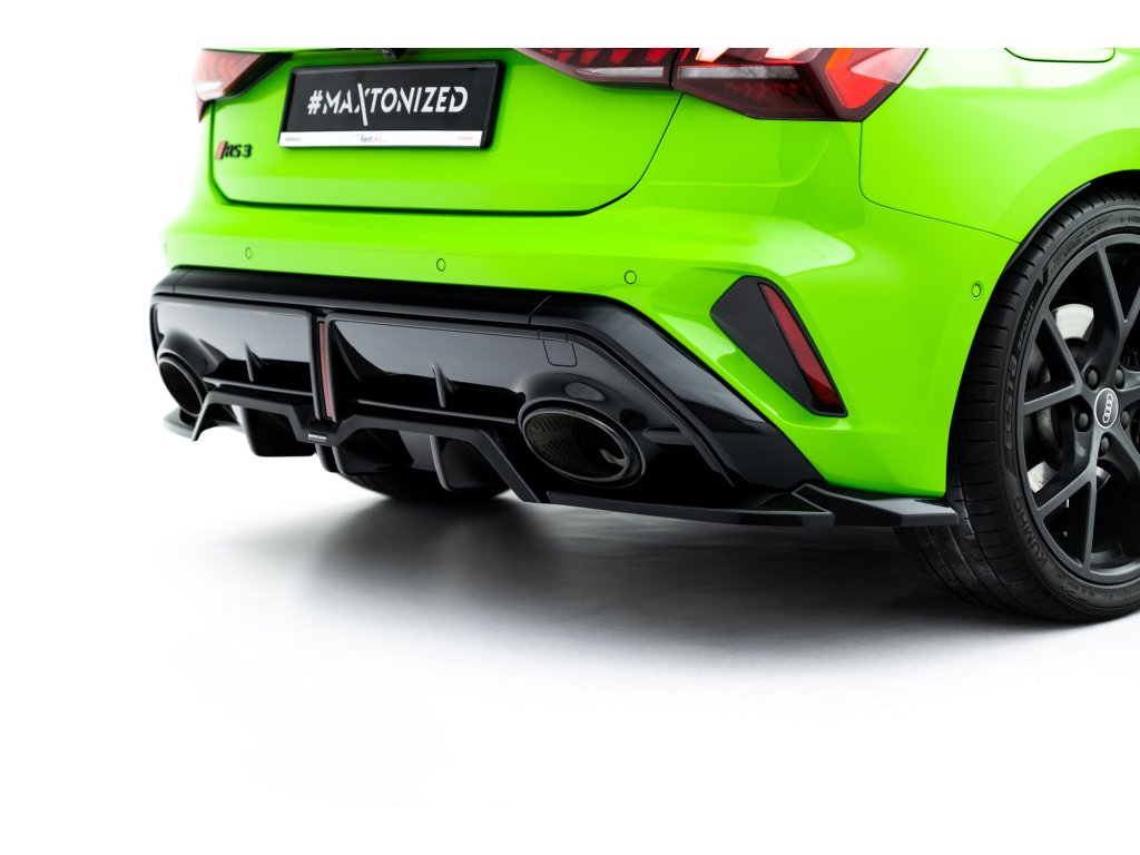 Maxton Design spoiler pod zadní nárazník s žebrováním v.2 pro vozidlo Audi RS3 8Y Facelift . Povrchová úprava spoileru černý lesklý plast ABS.