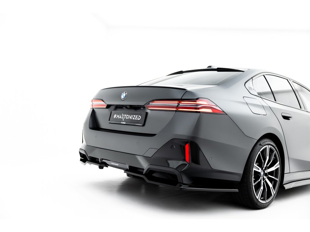 Maxton Design spoiler pod zadní nárazník s žebrováním v.2 pro vozidlo BMW i5 G60 M-Pack, G61 M-Pack . Povrchová úprava spoileru černý lesklý plast ABS.
