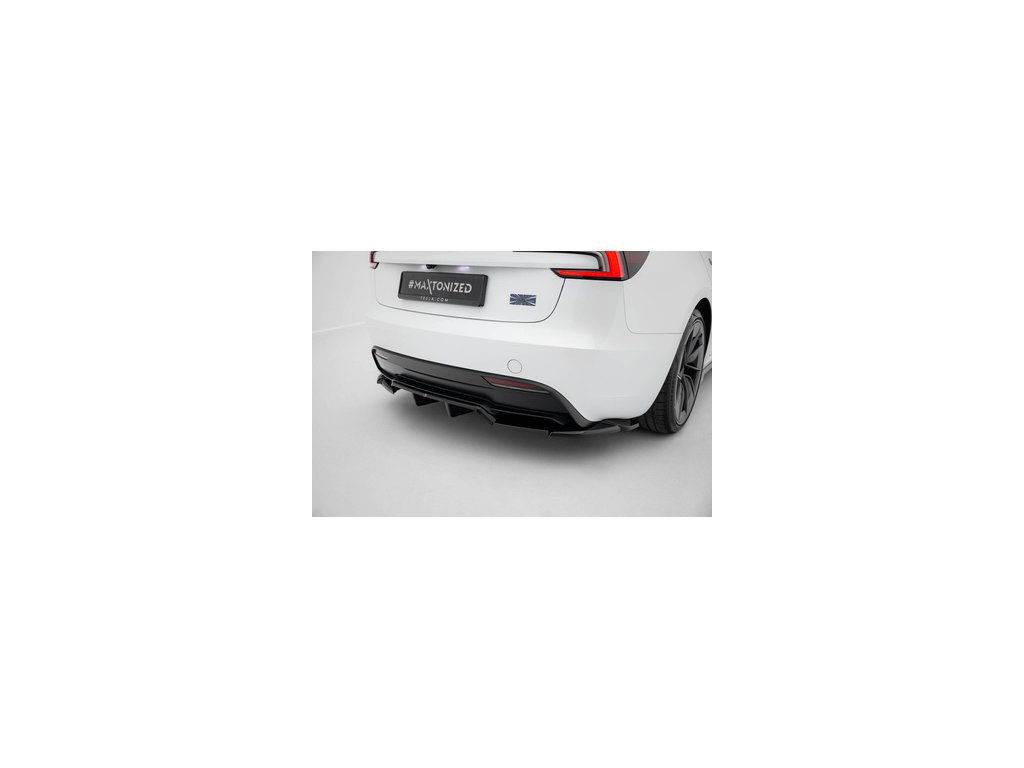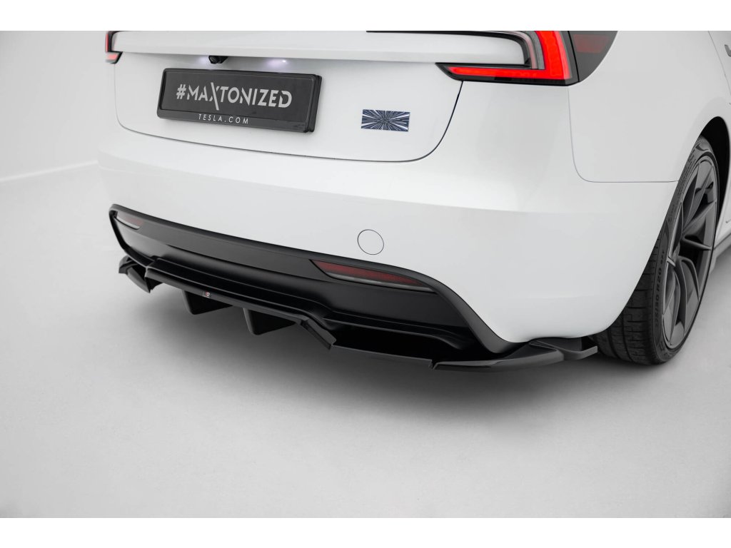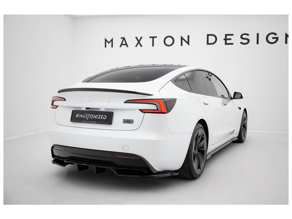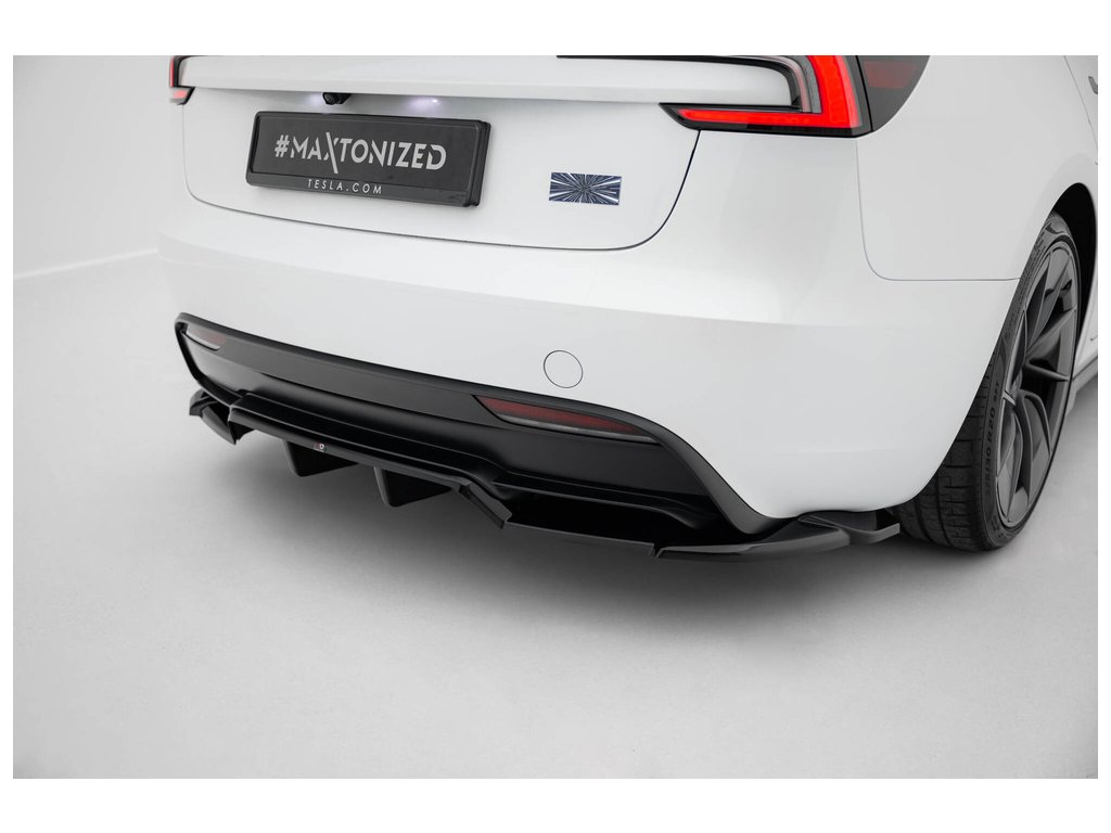Maxton Design spoiler pod zadní nárazník s žebrováním v.2 pro Tesla Model 3 Mk1 Project Highland Facelift, černý lesklý plast ABS, Performance