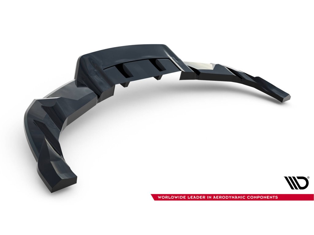 Maxton Design spoiler pod zadní nárazník s žebrováním v.2 pro vozidlo Tesla Model 3 Mk1 Project Highland Facelift . Povrchová úprava spoileru černý lesklý plast ABS.
