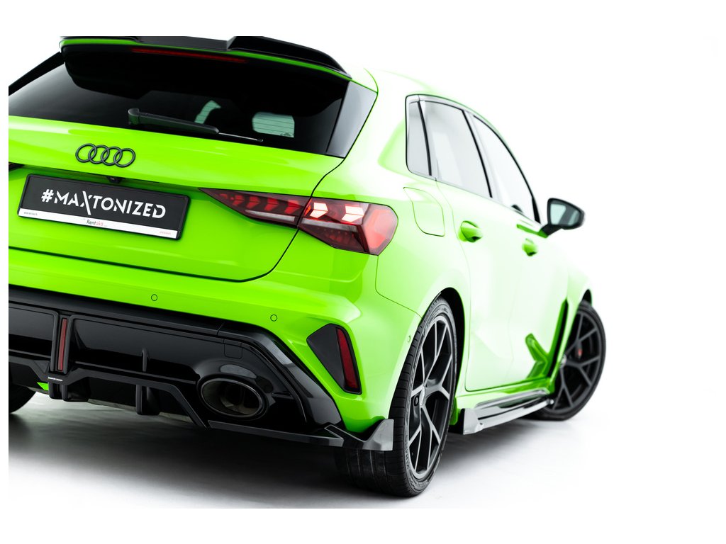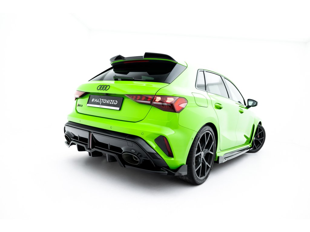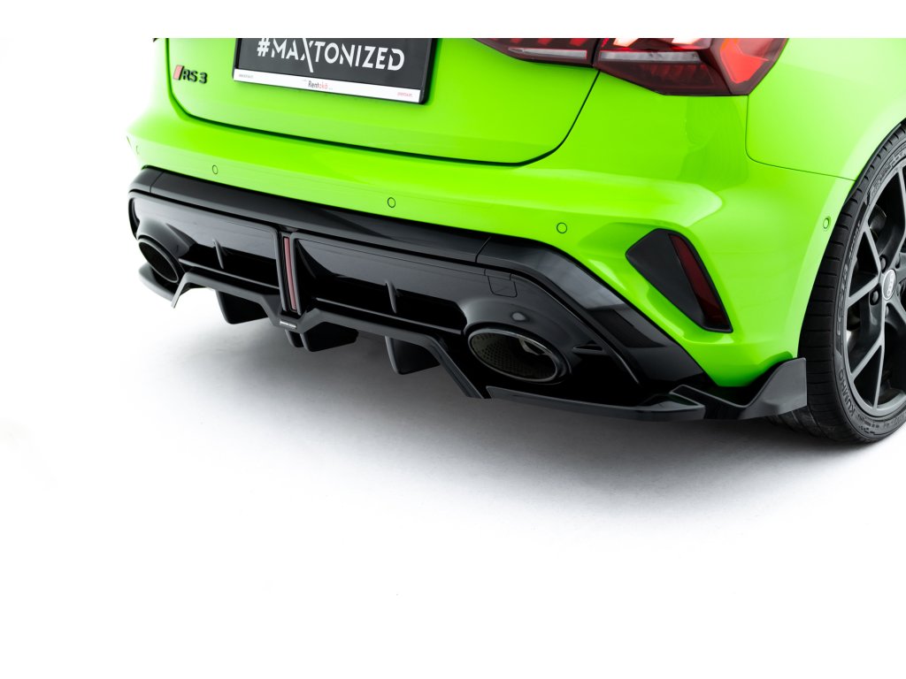 Maxton Design spoiler pod zadní nárazník s žebrováním v.3 pro vozidlo Audi RS3 8Y Facelift . Povrchová úprava spoileru černý lesklý plast ABS.