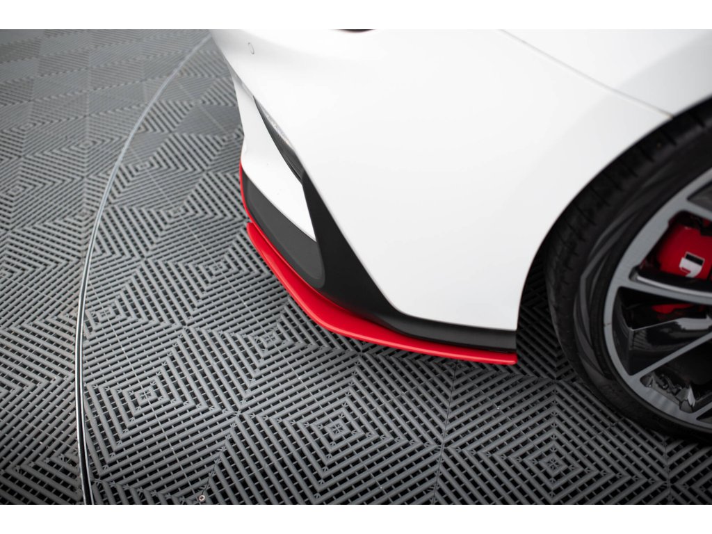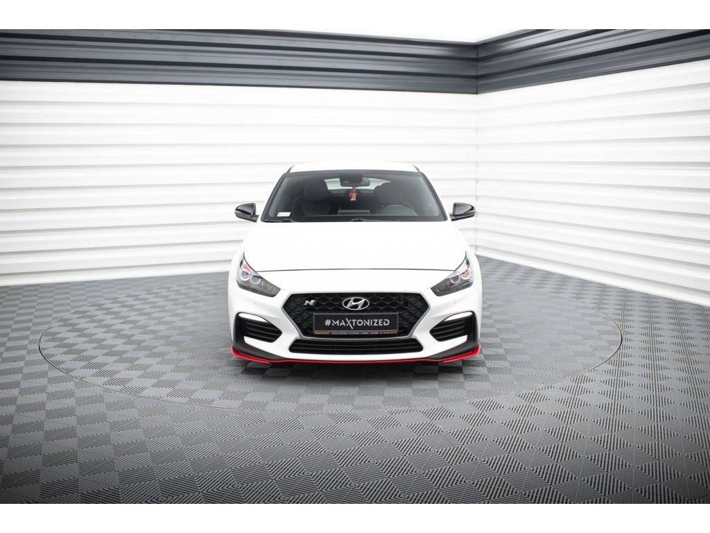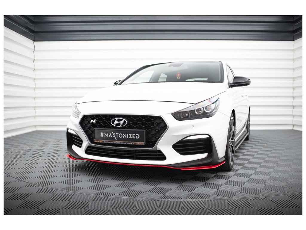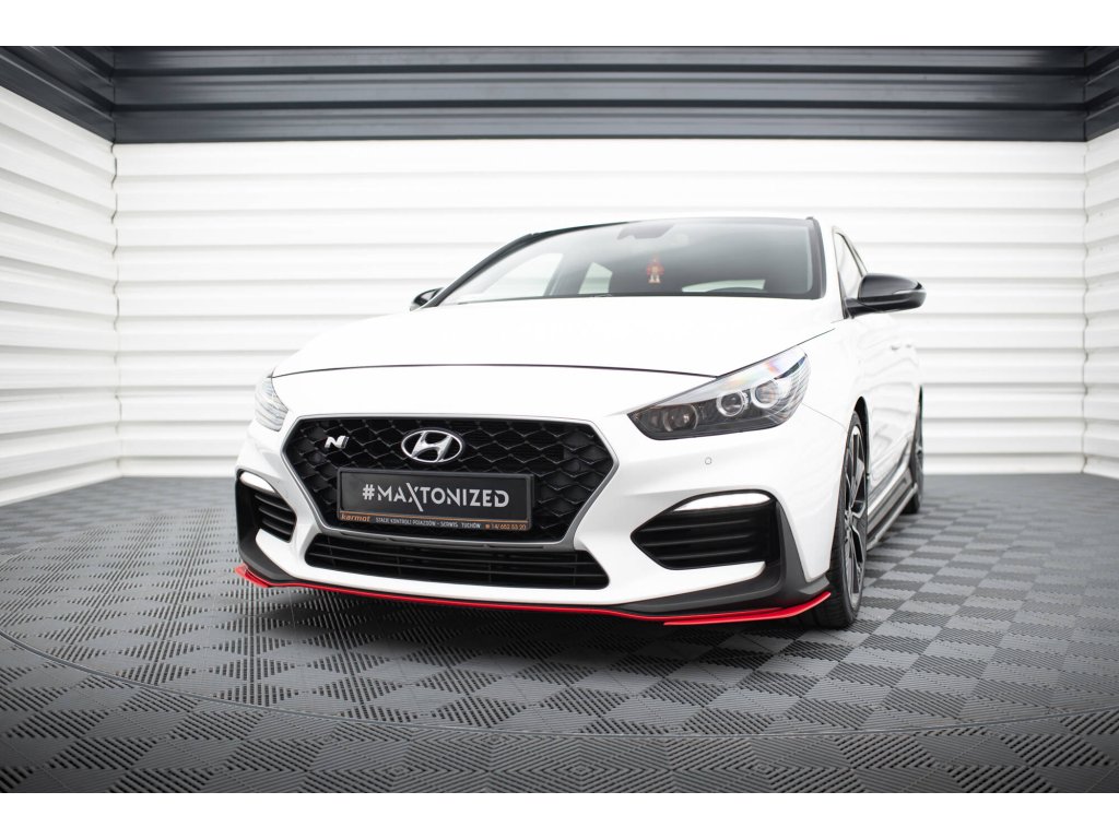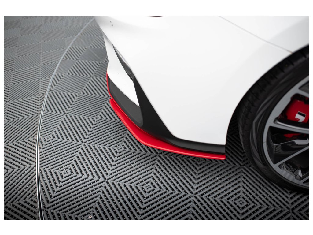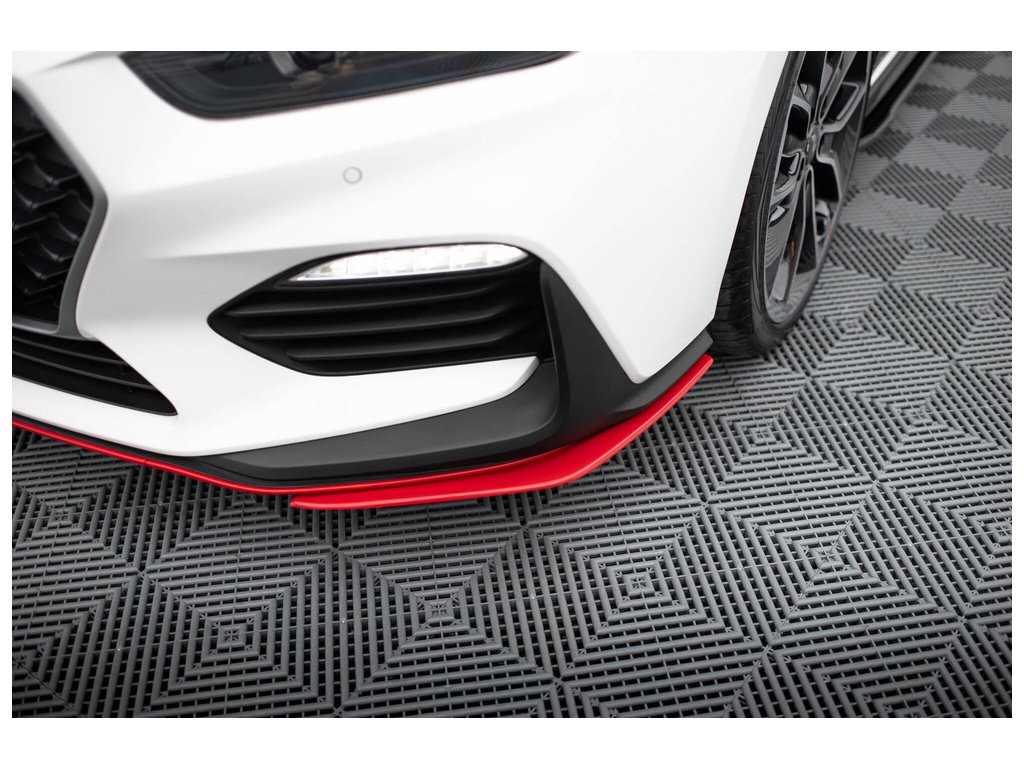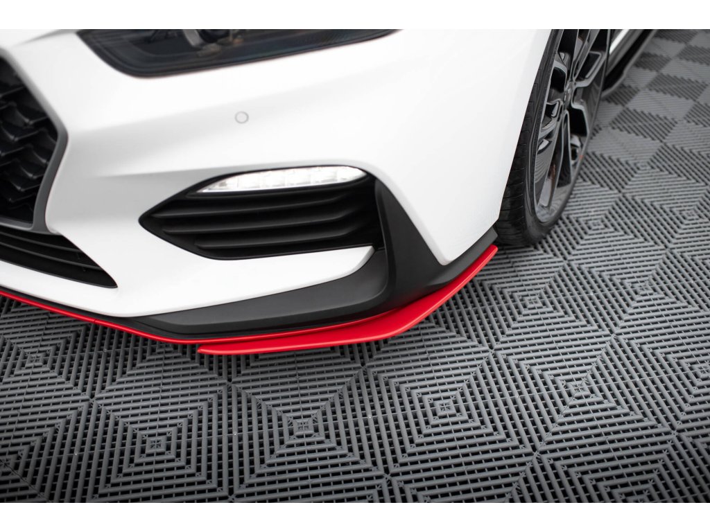Maxton Design spoilery pod přední nárazník pro vozidlo Hyundai i30 N Mk3 . Povrchová úprava spoileru červený lesklý plast ABS.
