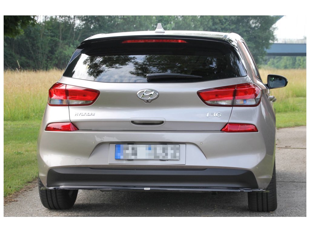 Maxton Design středový spoiler pod zadní nárazník bez žebrování pro vozidlo Hyundai I30 Mk3 . Povrchová úprava spoileru černý lesklý plast ABS.