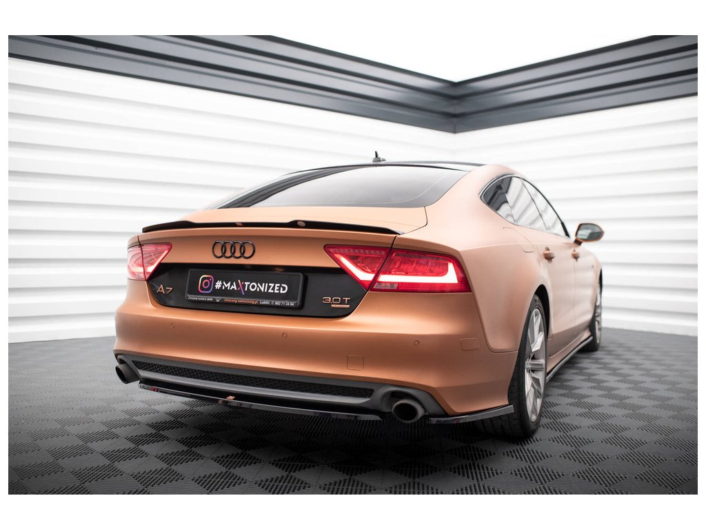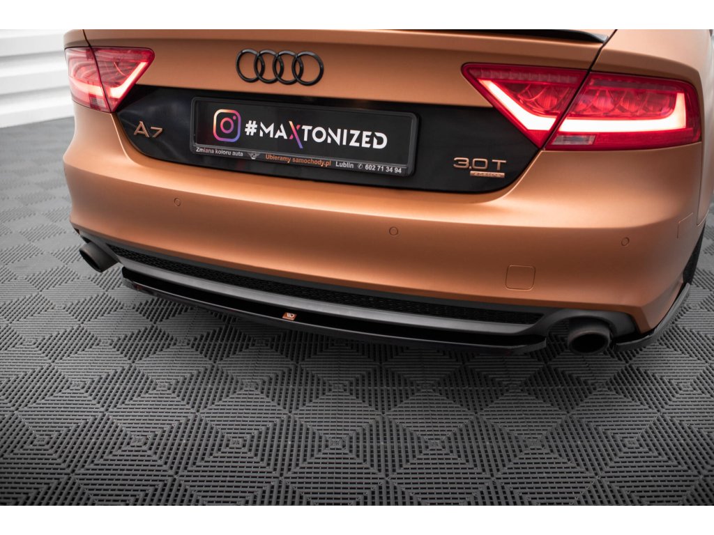 Maxton Design středový spoiler pod zadní nárazník pro vozidlo Audi A7 C7 . Povrchová úprava spoileru černý lesklý plast ABS.