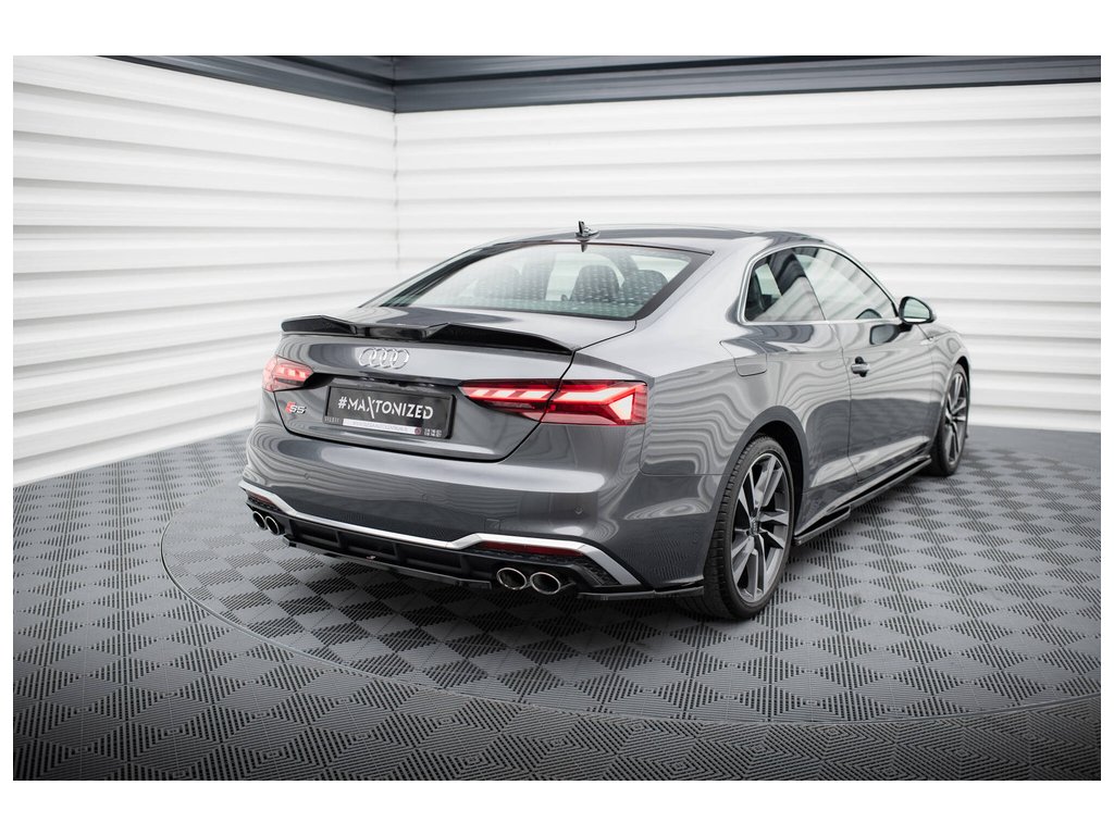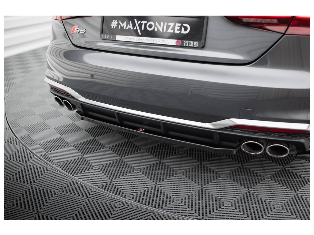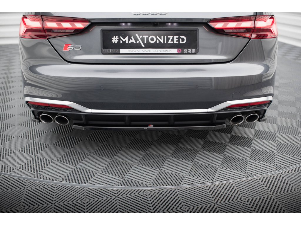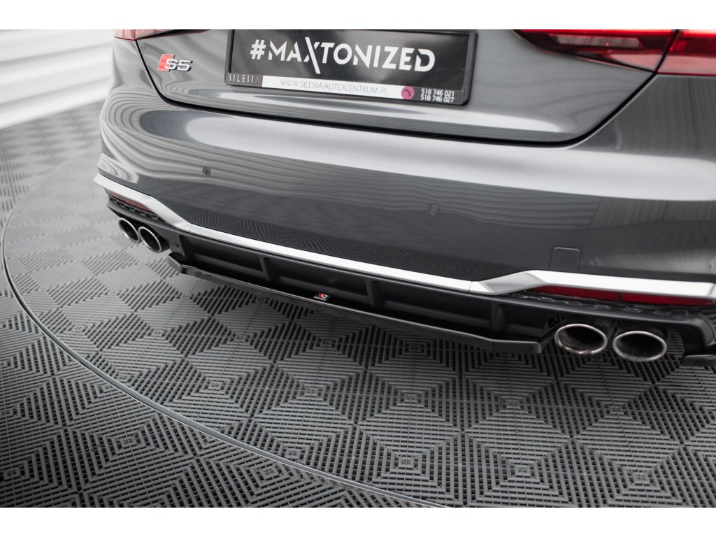 Maxton Design středový spoiler pod zadní nárazník pro vozidlo Audi S5 F5 FL . Povrchová úprava spoileru černý lesklý plast ABS.