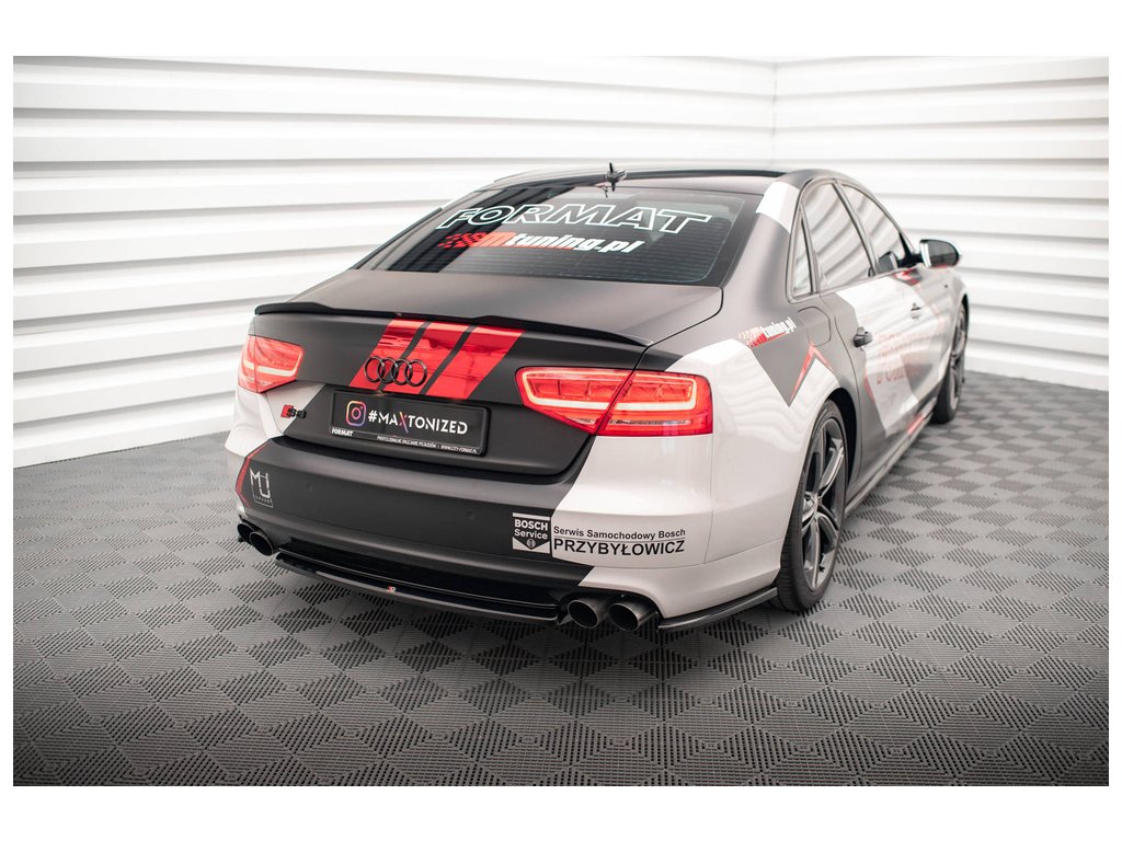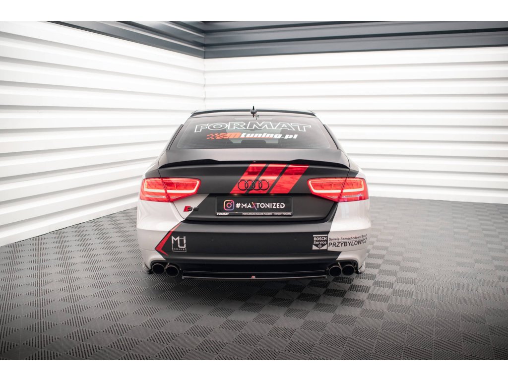 Maxton Design středový spoiler pod zadní nárazník pro vozidlo Audi S8 D4 . Povrchová úprava spoileru černý lesklý plast ABS.
