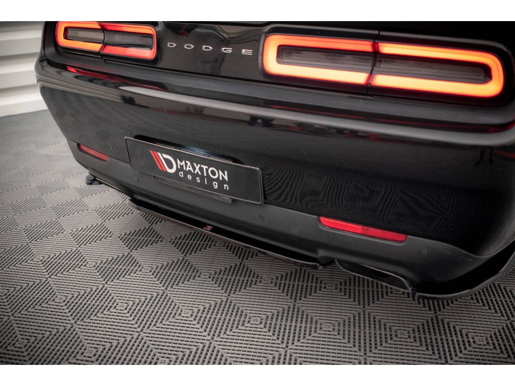 Maxton Design středový spoiler pod zadní nárazník pro vozidlo Dodge Challenger Mk3 RT Facelift . Povrchová úprava spoileru carbon-Look.