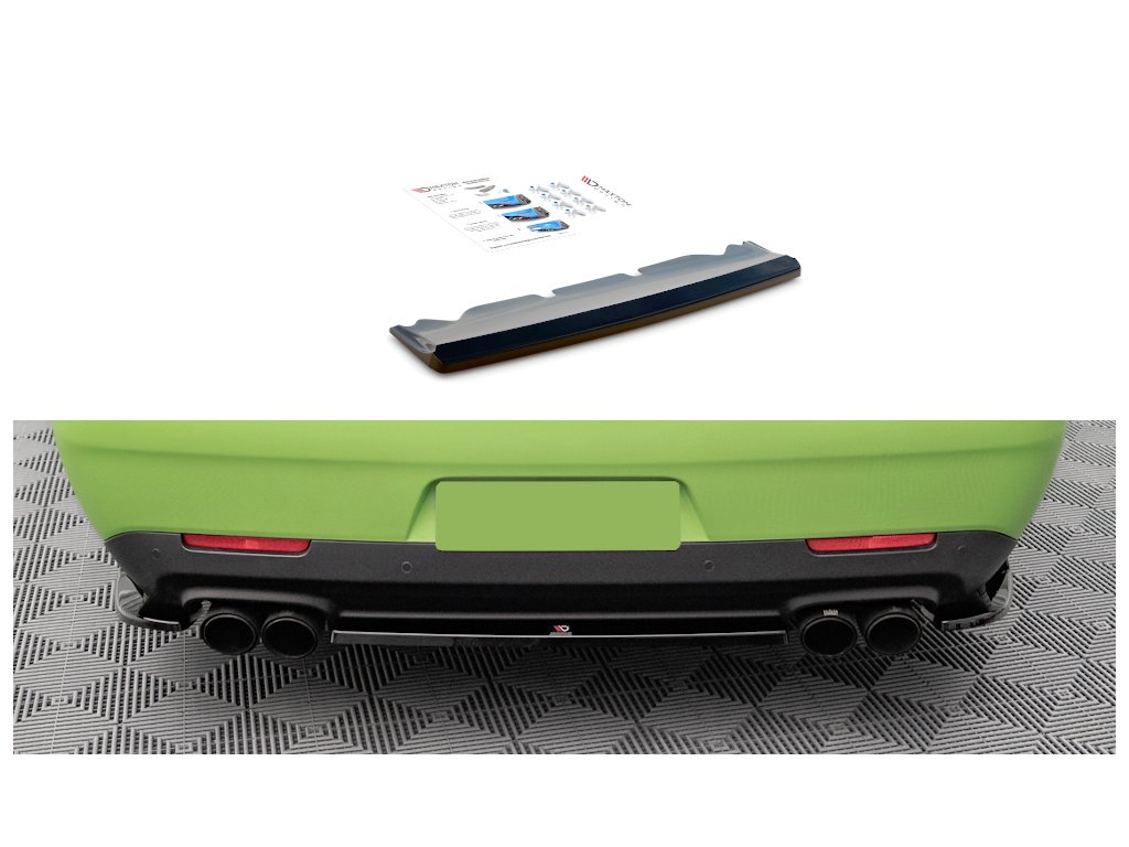 Maxton Design středový spoiler pod zadní nárazník pro vozidlo Dodge Challenger MK3 SRT Hellcat Widebody . Povrchová úprava spoileru carbon-Look.