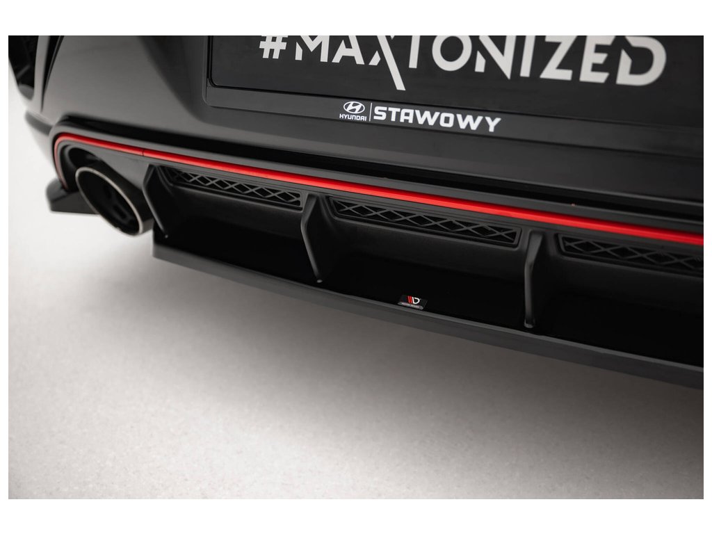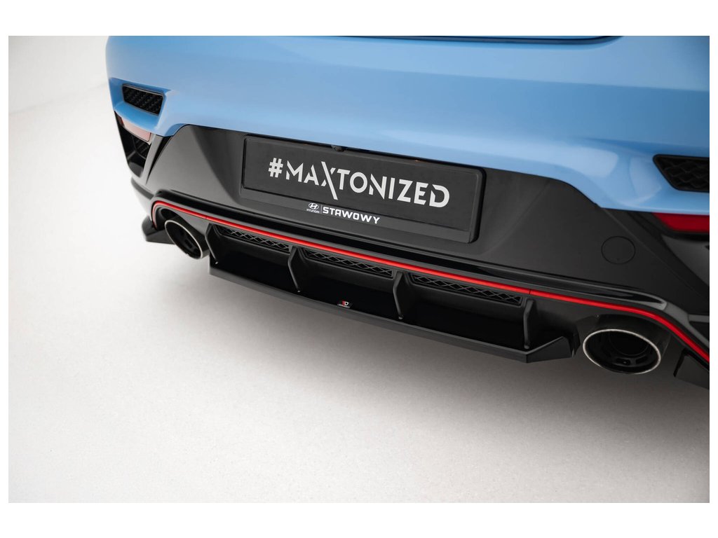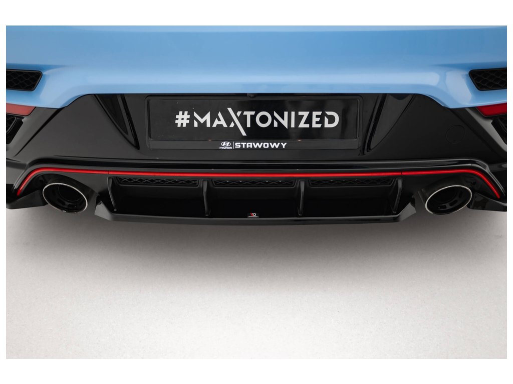 Maxton Design středový spoiler pod zadní nárazník pro vozidlo Hyundai Veloster N Mk2 . Povrchová úprava spoileru černý lesklý plast ABS.
