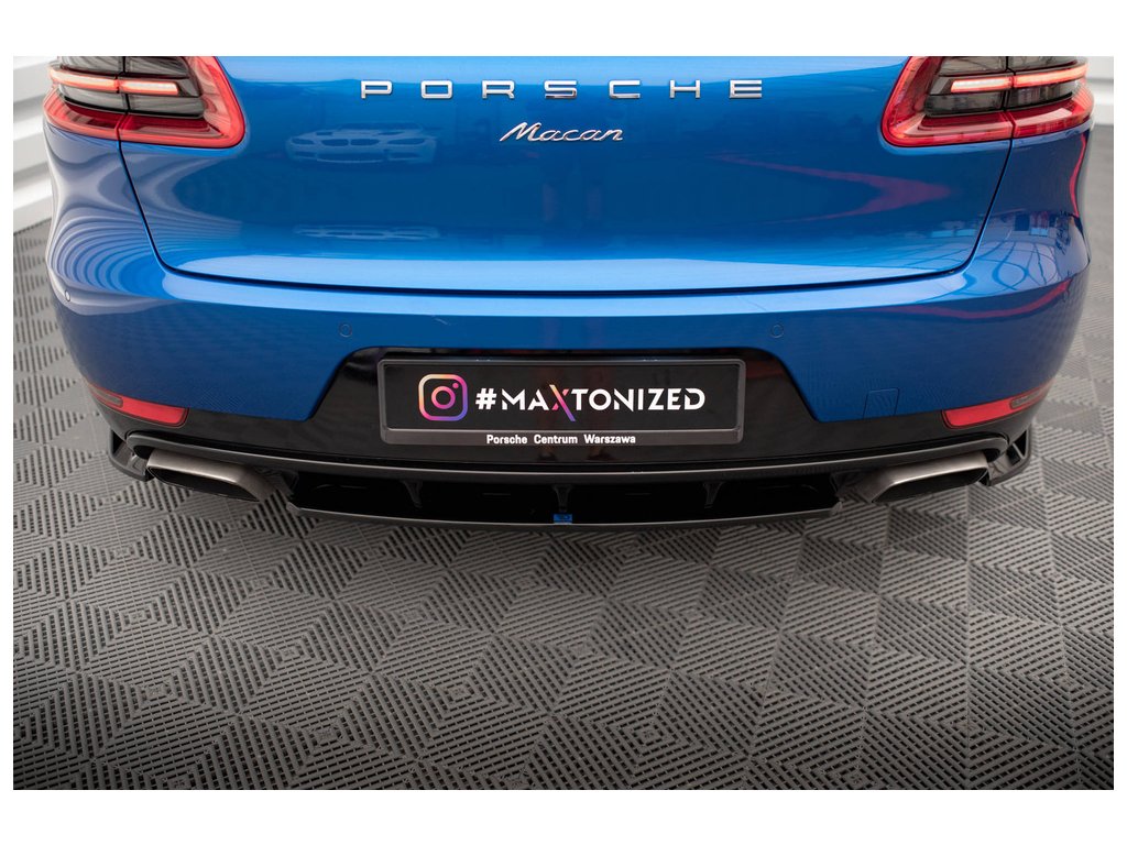 Maxton Design středový spoiler pod zadní nárazník pro vozidlo Porsche Macan Mk1 . Povrchová úprava spoileru černý lesklý plast ABS.