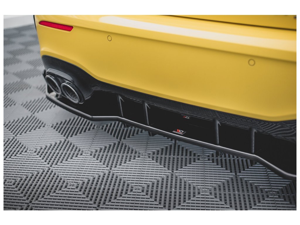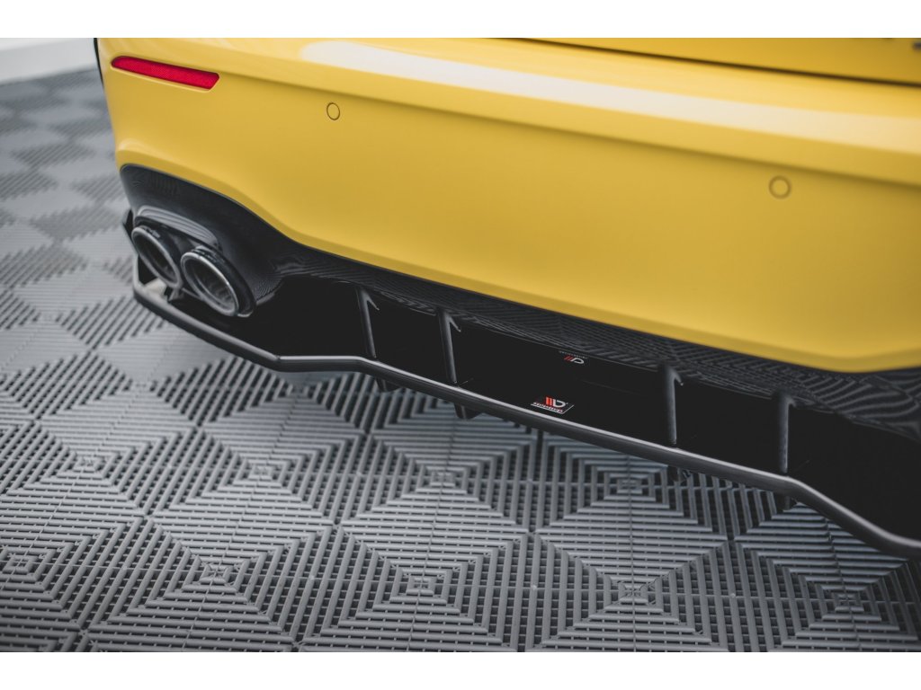 Maxton Design středový spoiler pod zadní nárazník s křidélky pro vozidlo Mercedes třída A W177 45 AMG . Povrchová úprava spoileru černý lesklý plast ABS.