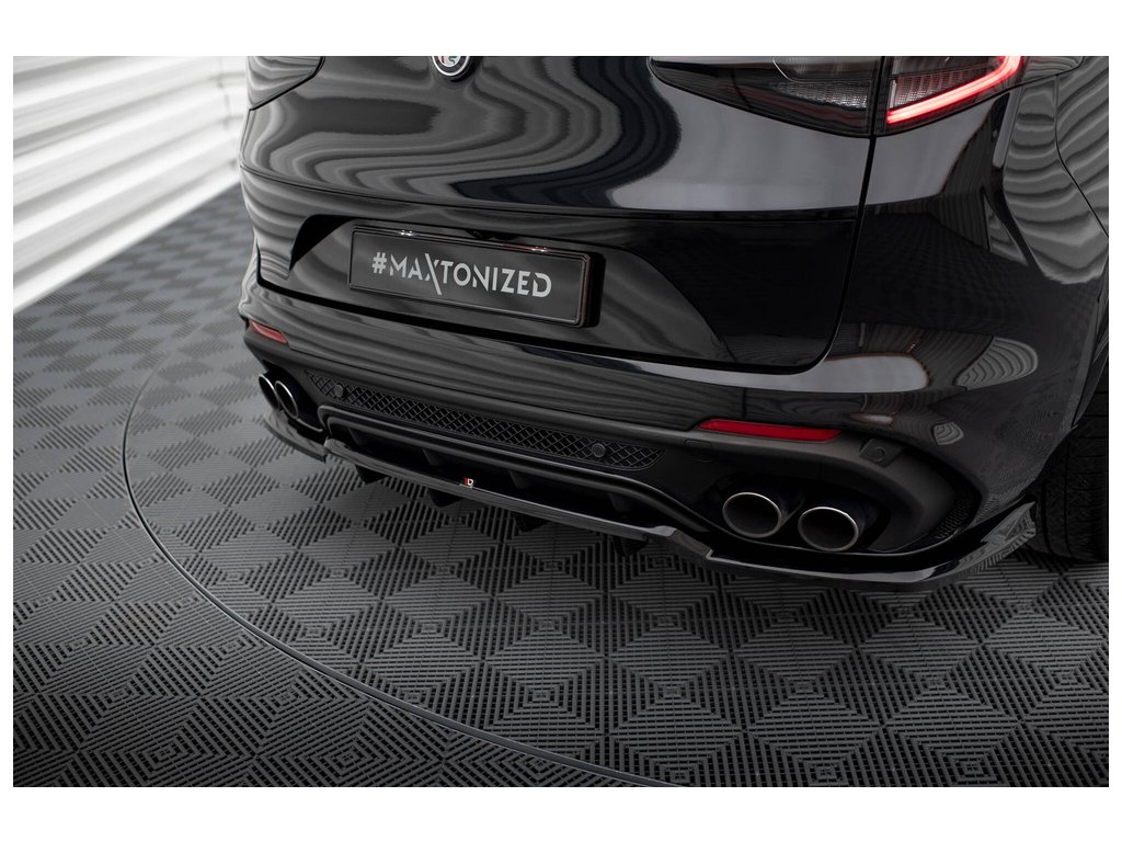 Maxton Design středový spoiler pod zadní nárazník s žebrováním pro Alfa Romeo Stelvio, černý lesklý plast ABS, Quadrifoglio