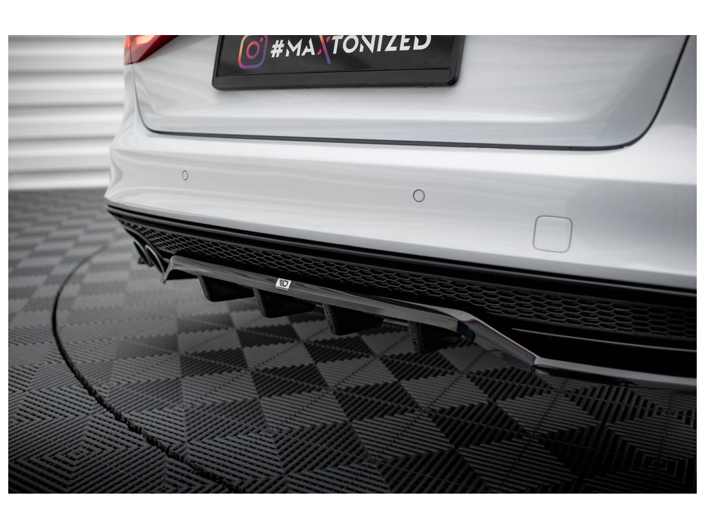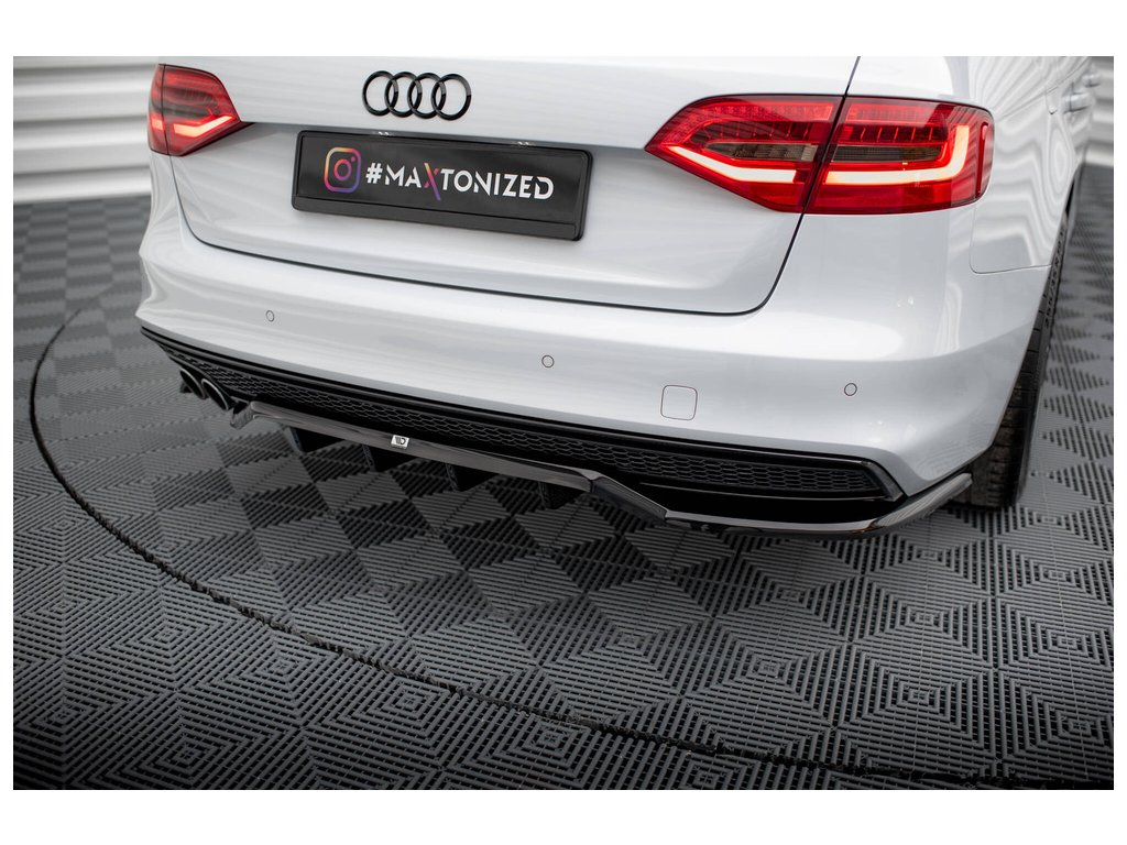 Maxton Design středový spoiler pod zadní nárazník s žebrováním pro Audi A4 B8 Competition Facelift, černý lesklý plast ABS, Avant