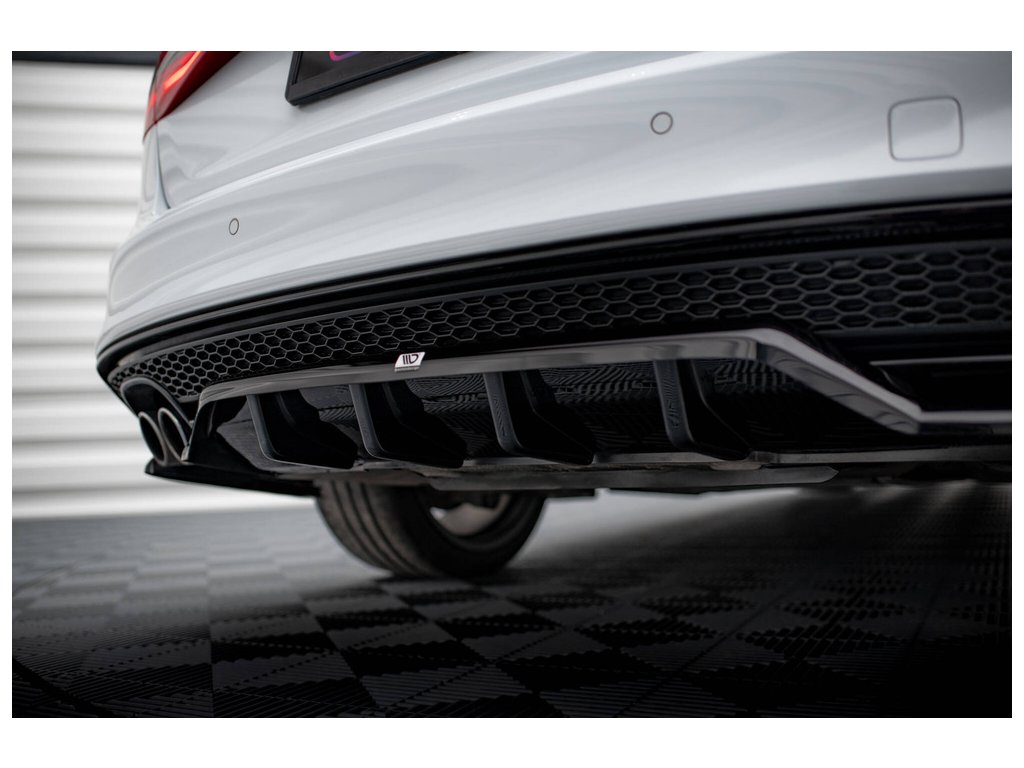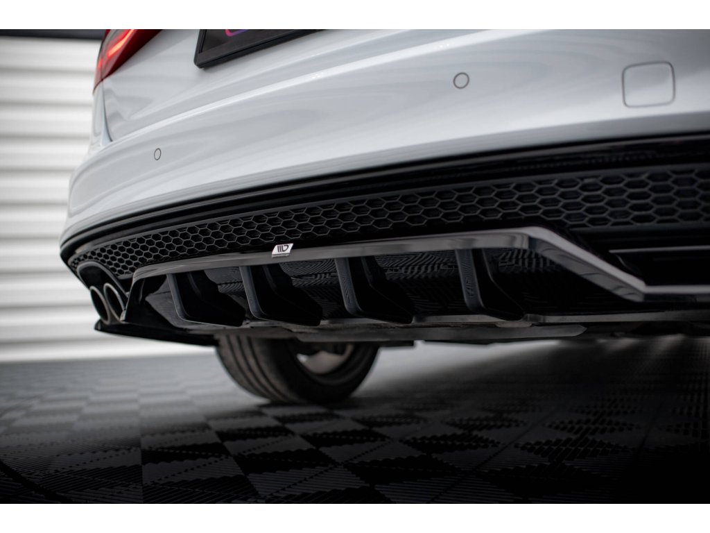 Maxton Design středový spoiler pod zadní nárazník s žebrováním pro vozidlo Audi A4 B8 Competition Facelift . Povrchová úprava spoileru černý lesklý plast ABS.
