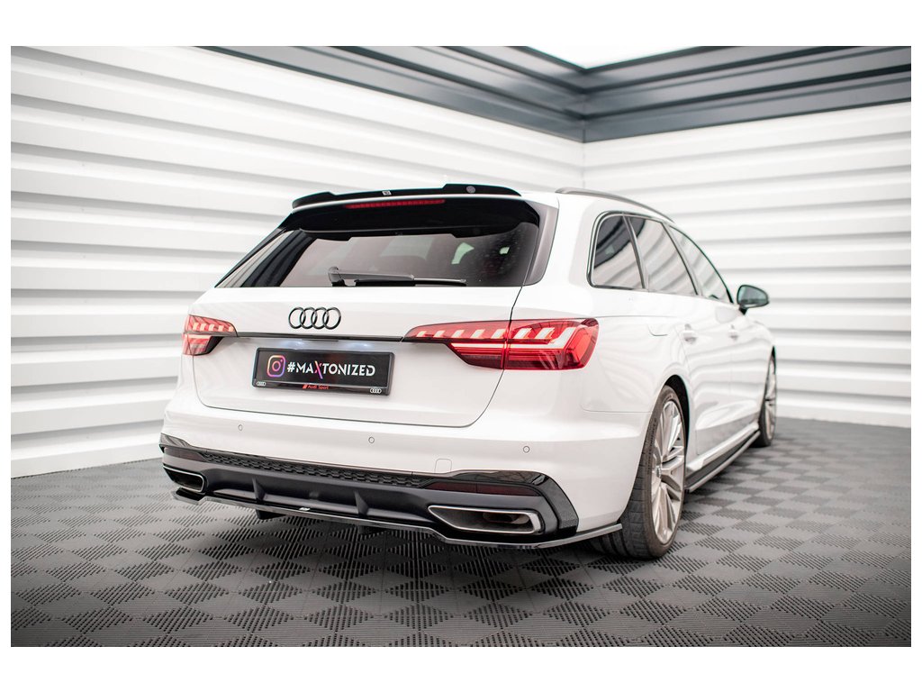 Maxton Design středový spoiler pod zadní nárazník s žebrováním pro vozidlo Audi A4 B9 FL . Povrchová úprava spoileru černý lesklý plast ABS.
