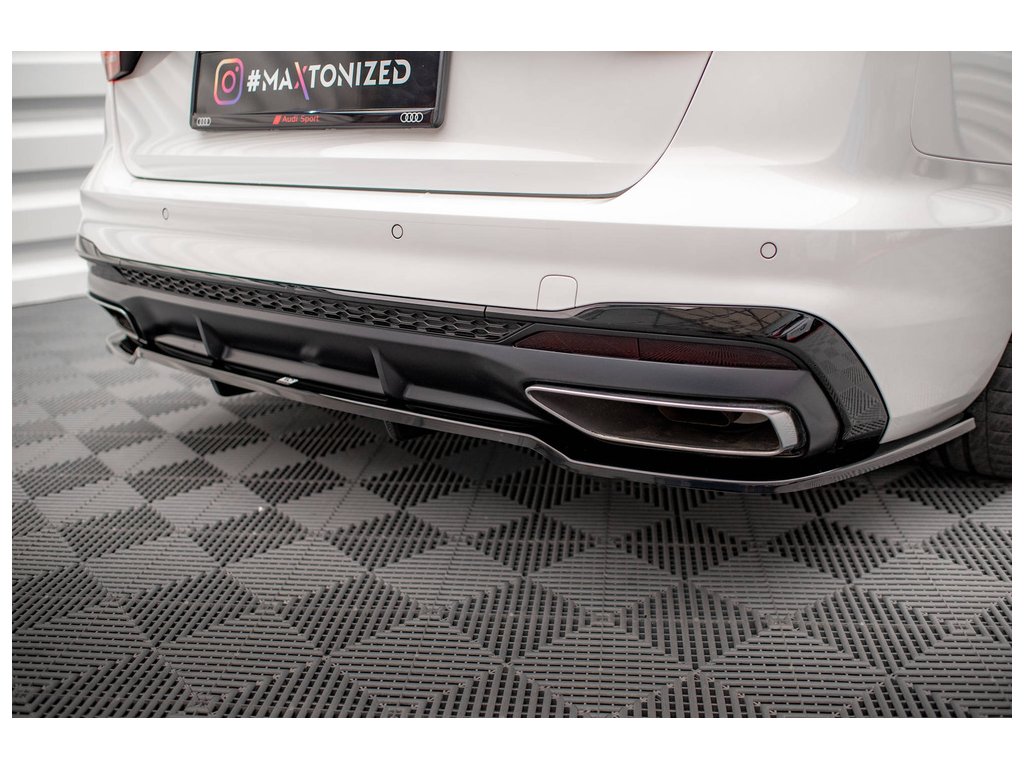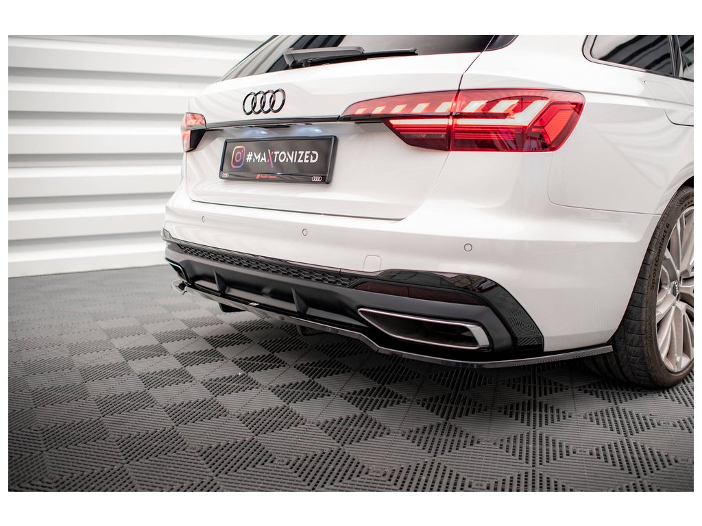 Maxton Design středový spoiler pod zadní nárazník s žebrováním pro Audi A4 B9 FL, černý lesklý plast ABS, S-Line