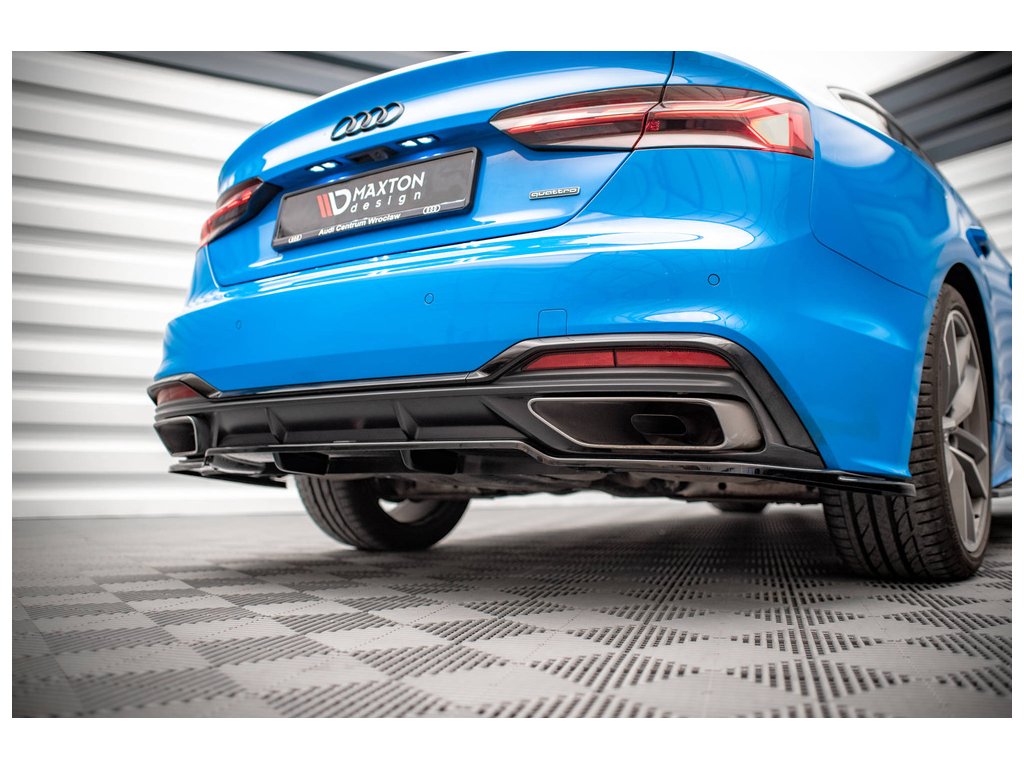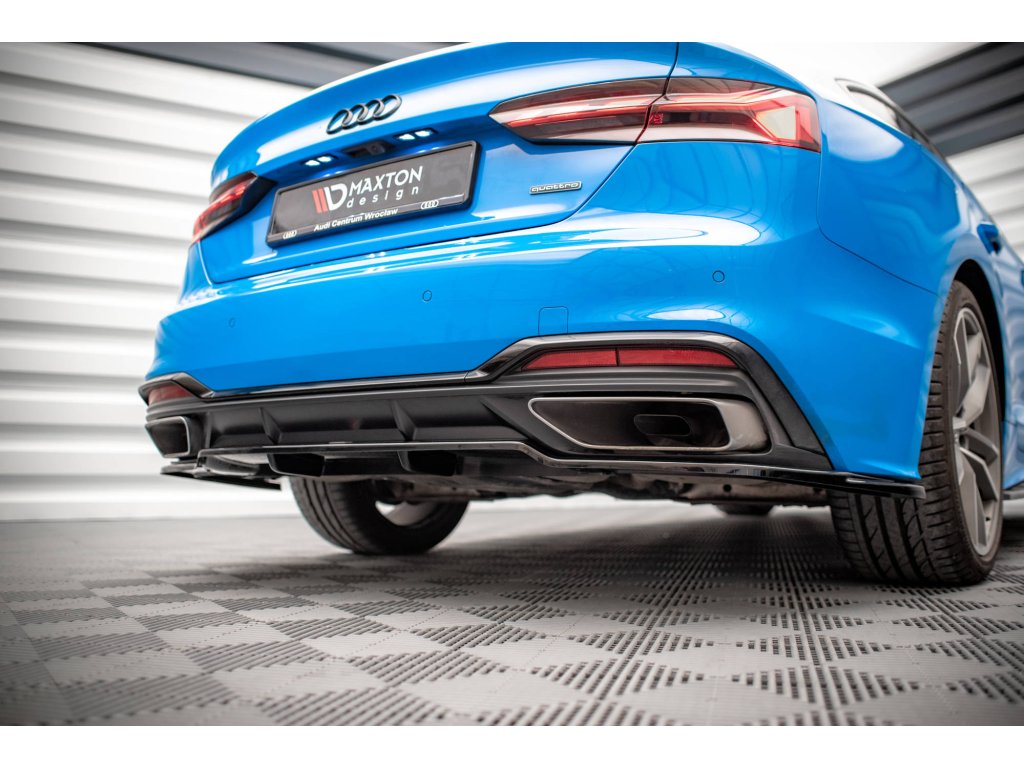 Maxton Design středový spoiler pod zadní nárazník s žebrováním pro Audi A5 F5 FL, černý lesklý plast ABS, S-Line