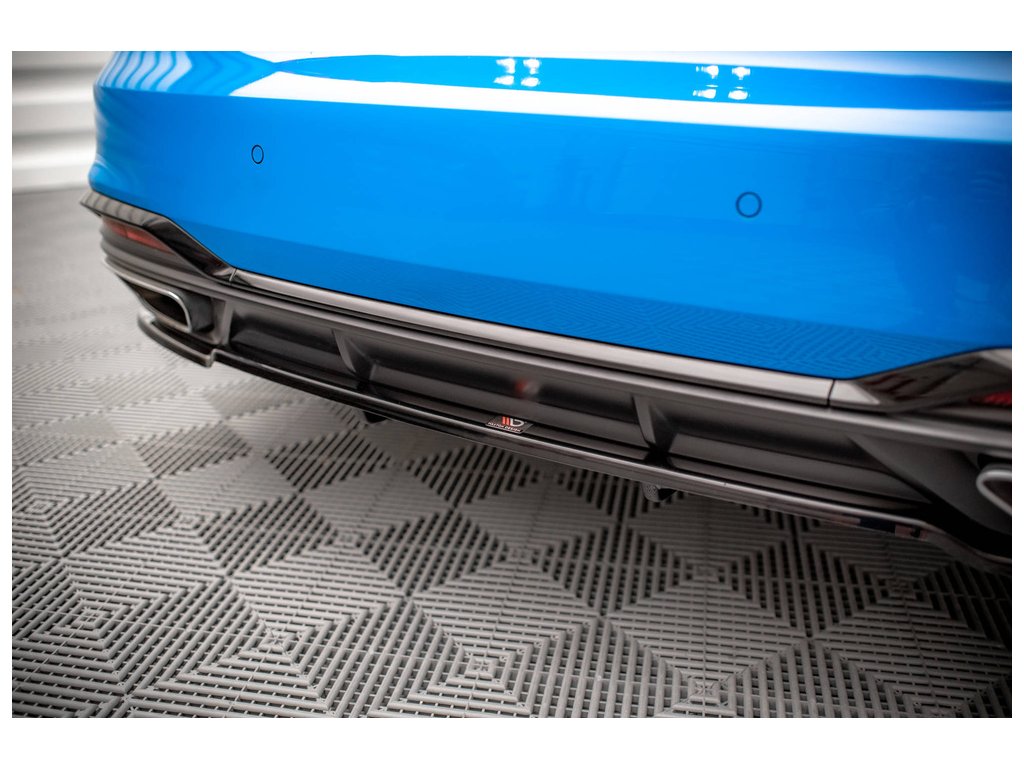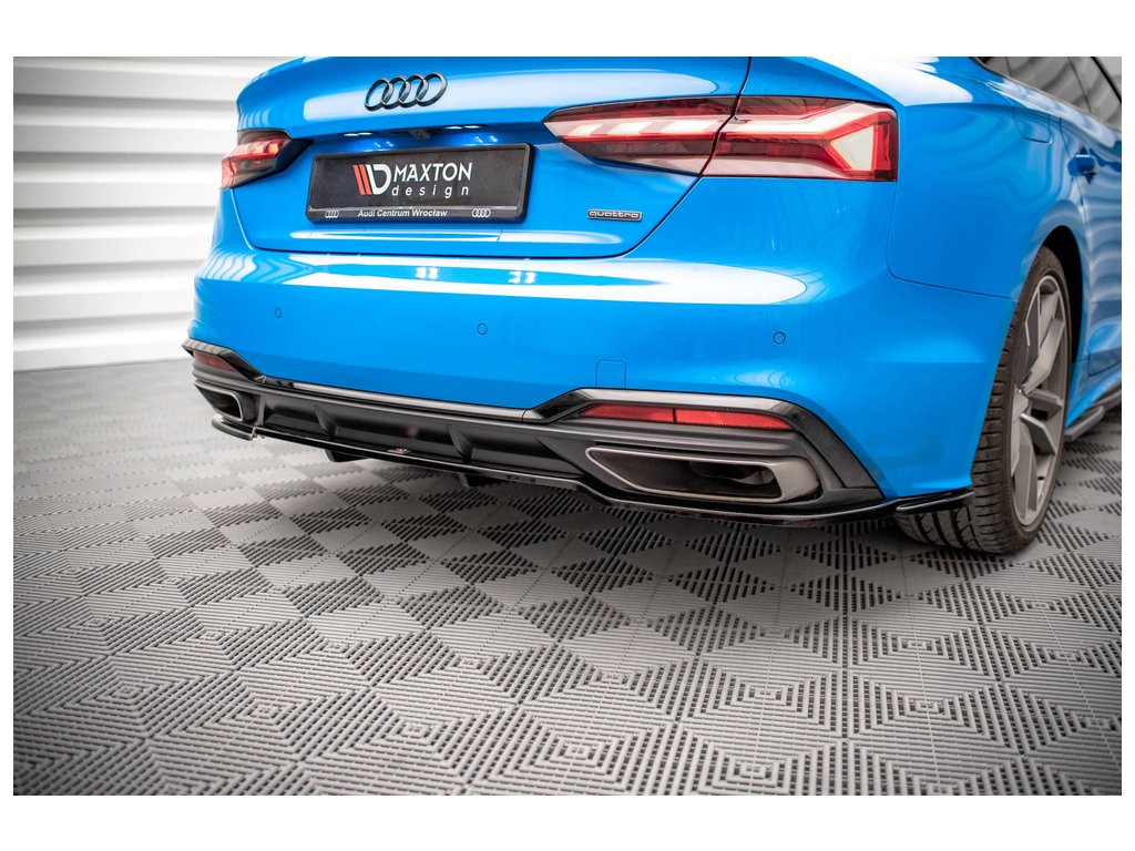 Maxton Design středový spoiler pod zadní nárazník s žebrováním pro vozidlo Audi A5 F5 FL . Povrchová úprava spoileru černý lesklý plast ABS.