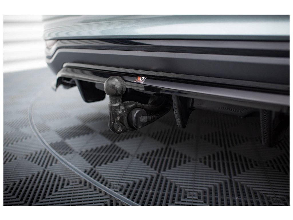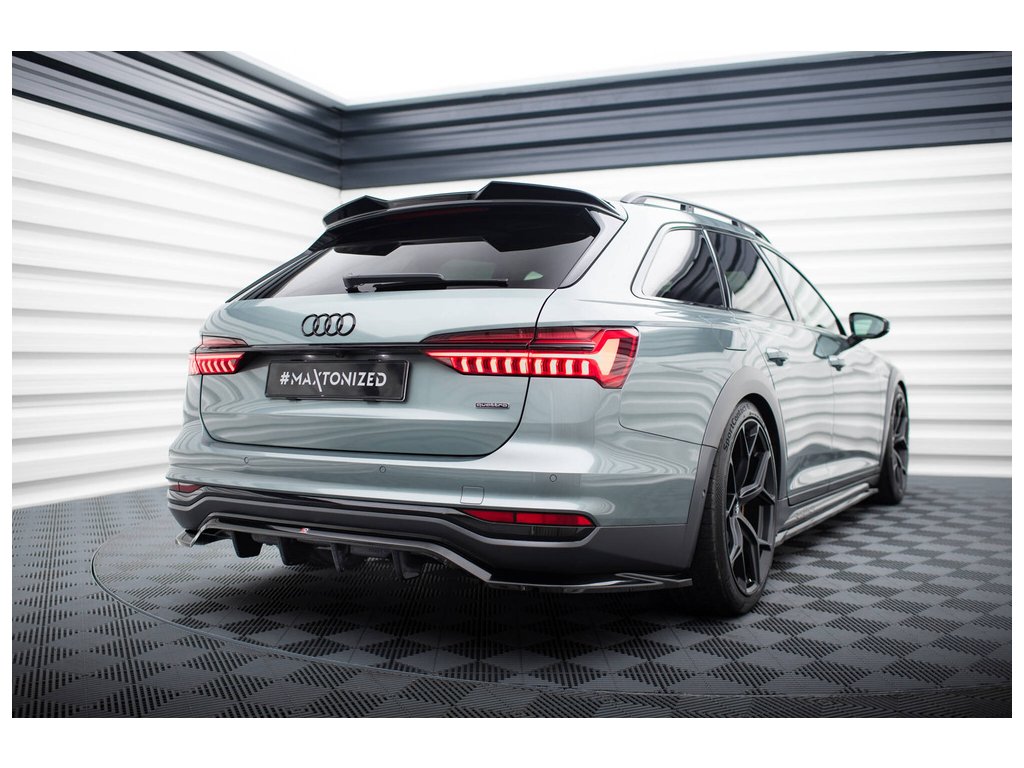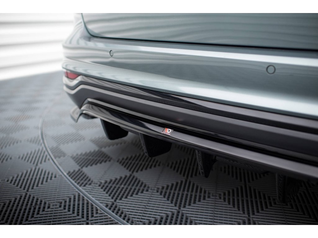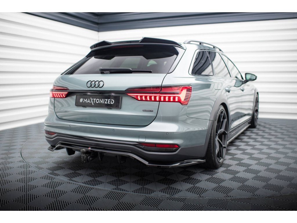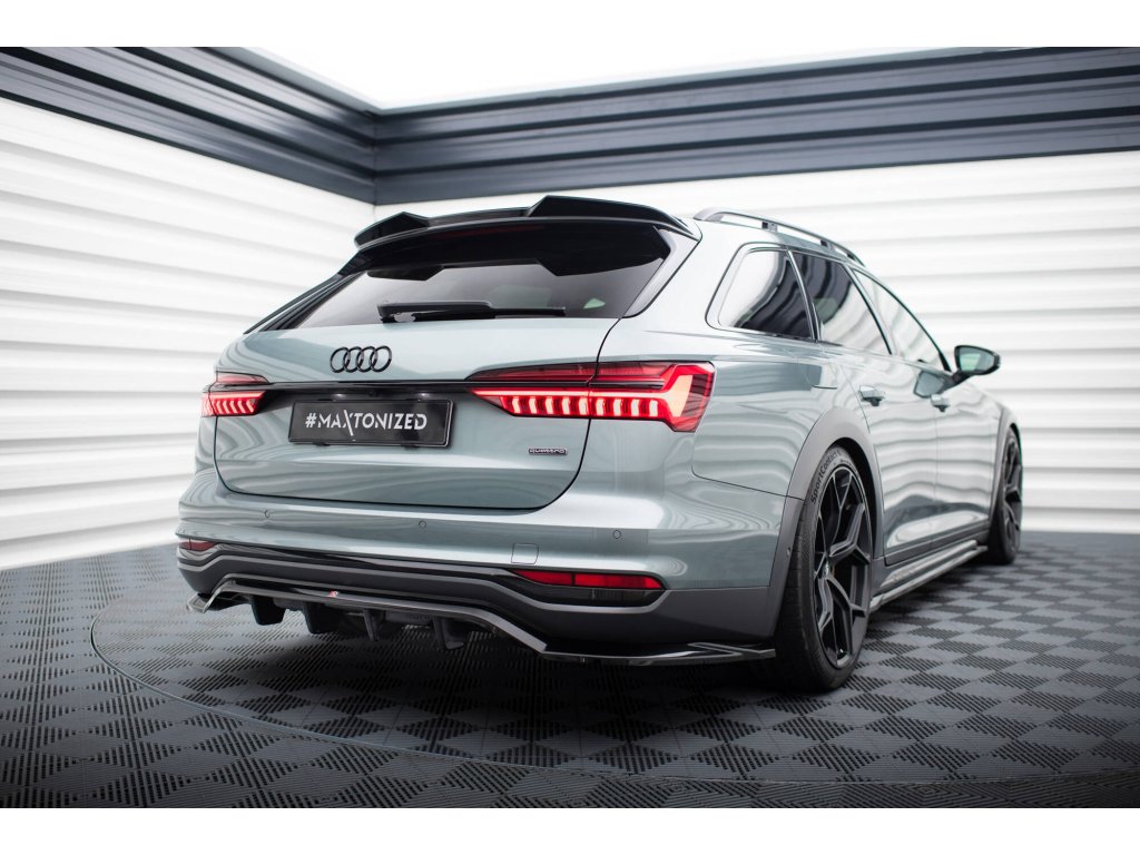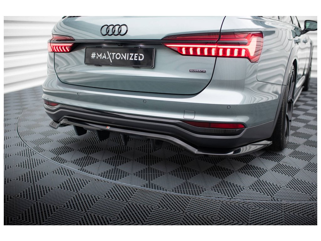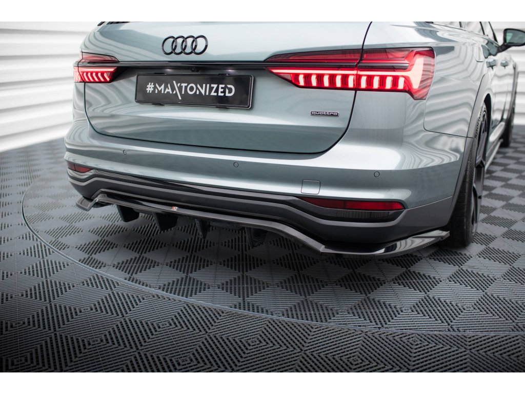 Maxton Design středový spoiler pod zadní nárazník s žebrováním pro vozidlo Audi A6 C8 Allroad . Povrchová úprava spoileru černý lesklý plast ABS.