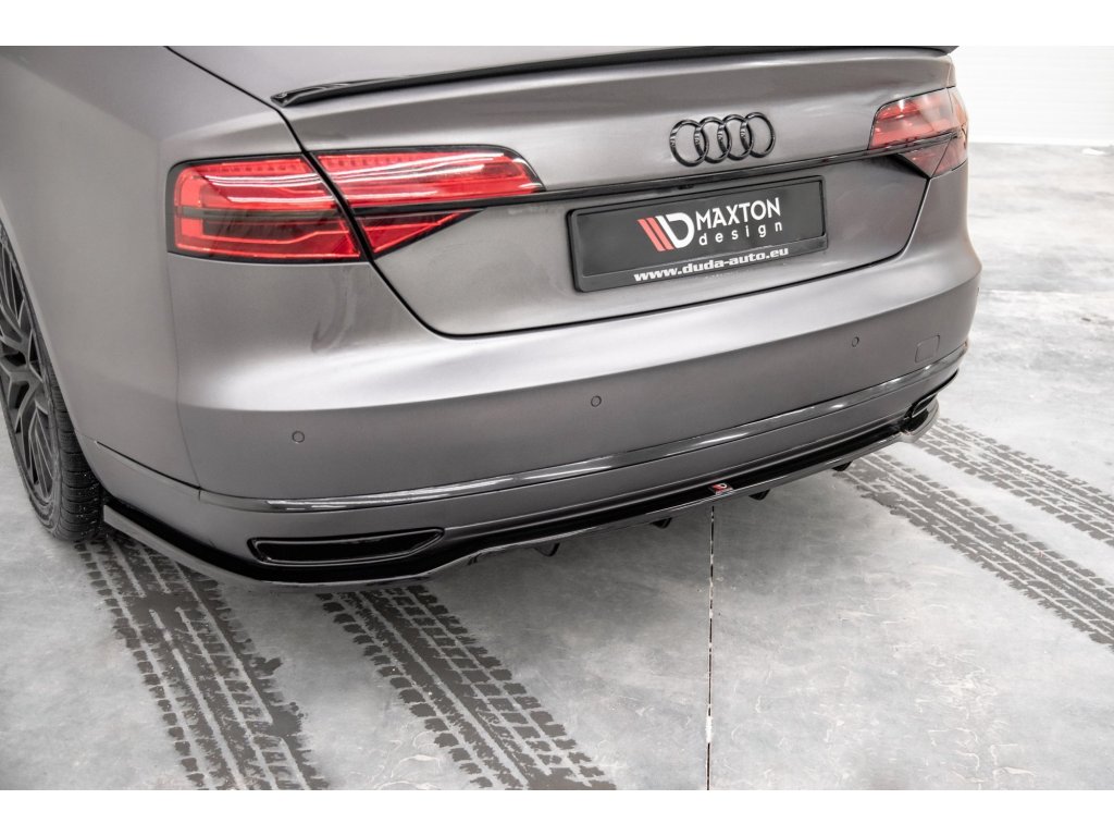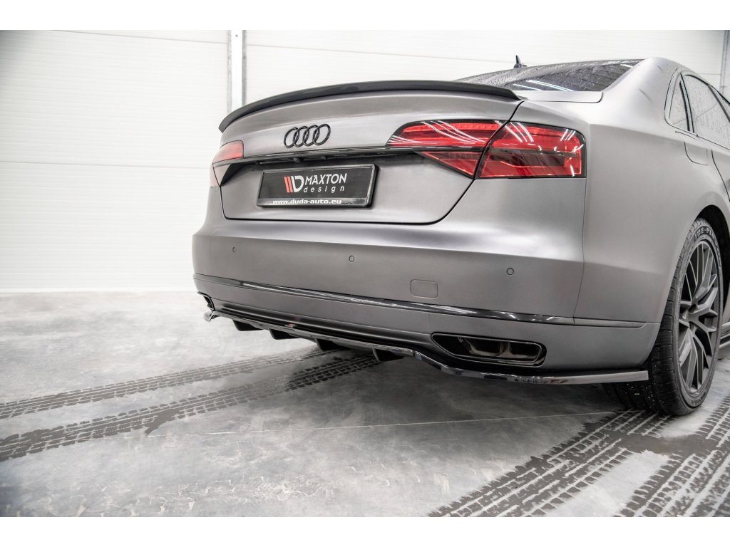 Maxton Design středový spoiler pod zadní nárazník s žebrováním pro vozidlo Audi A8 D4 FL . Povrchová úprava spoileru carbon-Look.