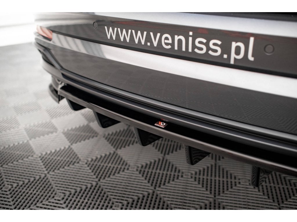 Maxton Design středový spoiler pod zadní nárazník s žebrováním pro Audi Q3 F3 S-Line, černý lesklý plast ABS