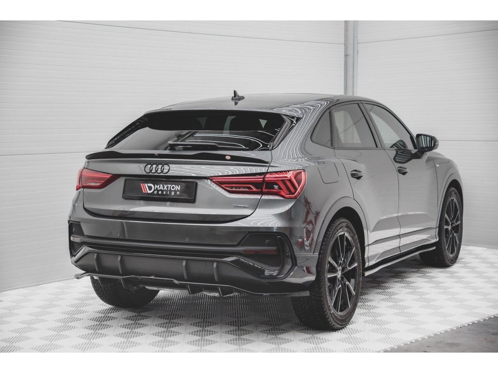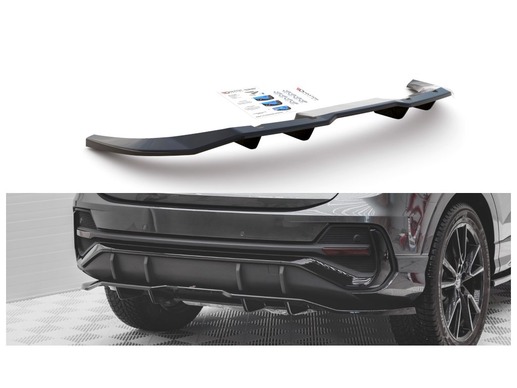 Maxton Design středový spoiler pod zadní nárazník s žebrováním pro vozidlo Audi Q3 Sportback S-Line . Povrchová úprava spoileru plast ABS bez povrchové úpravy.
