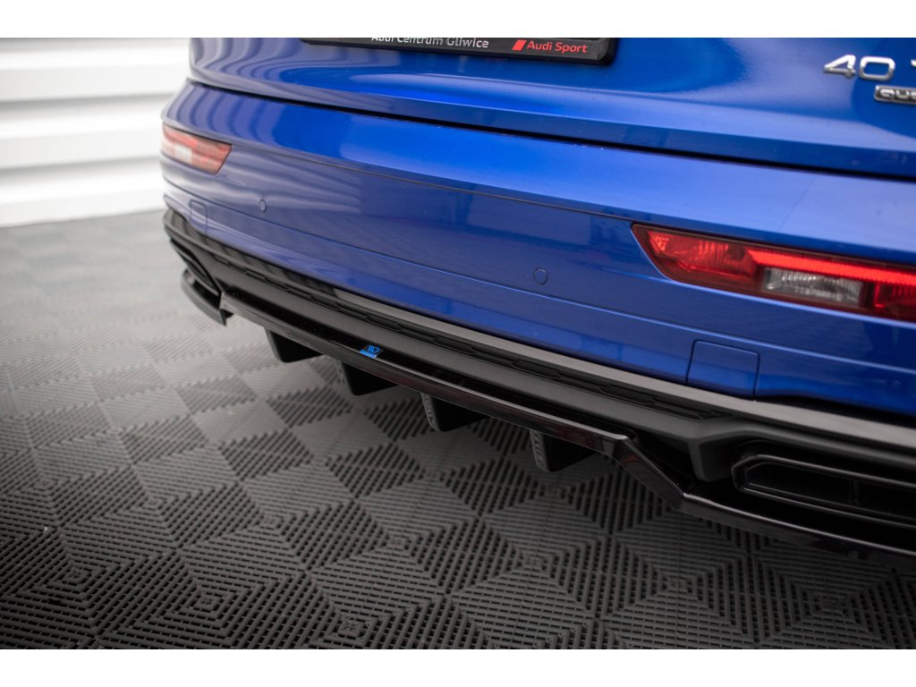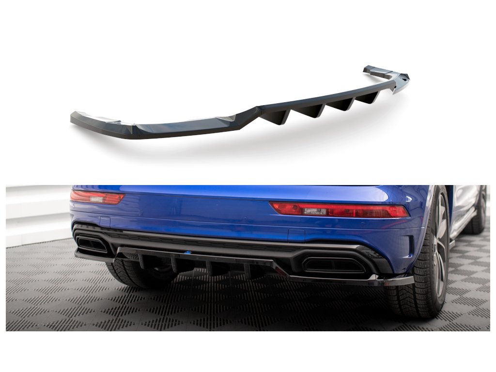 Maxton Design středový spoiler pod zadní nárazník s žebrováním pro vozidlo Audi Q5 Mk2 S-Line Facelift . Povrchová úprava spoileru carbon-Look.