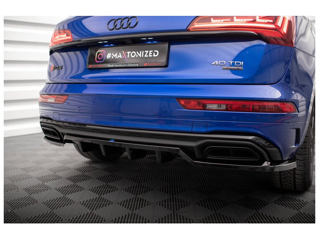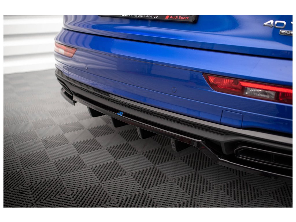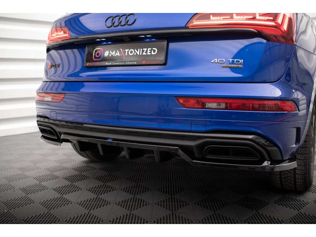 Maxton Design středový spoiler pod zadní nárazník s žebrováním pro Audi Q5 Mk2 S-Line Facelift, černý lesklý plast ABS