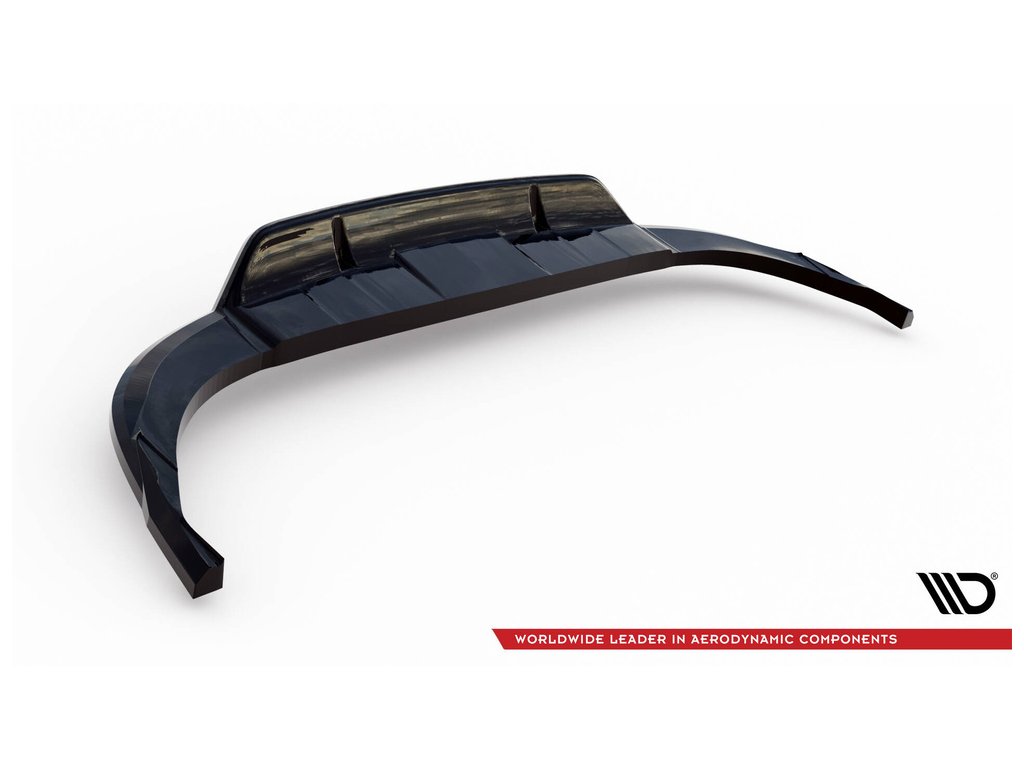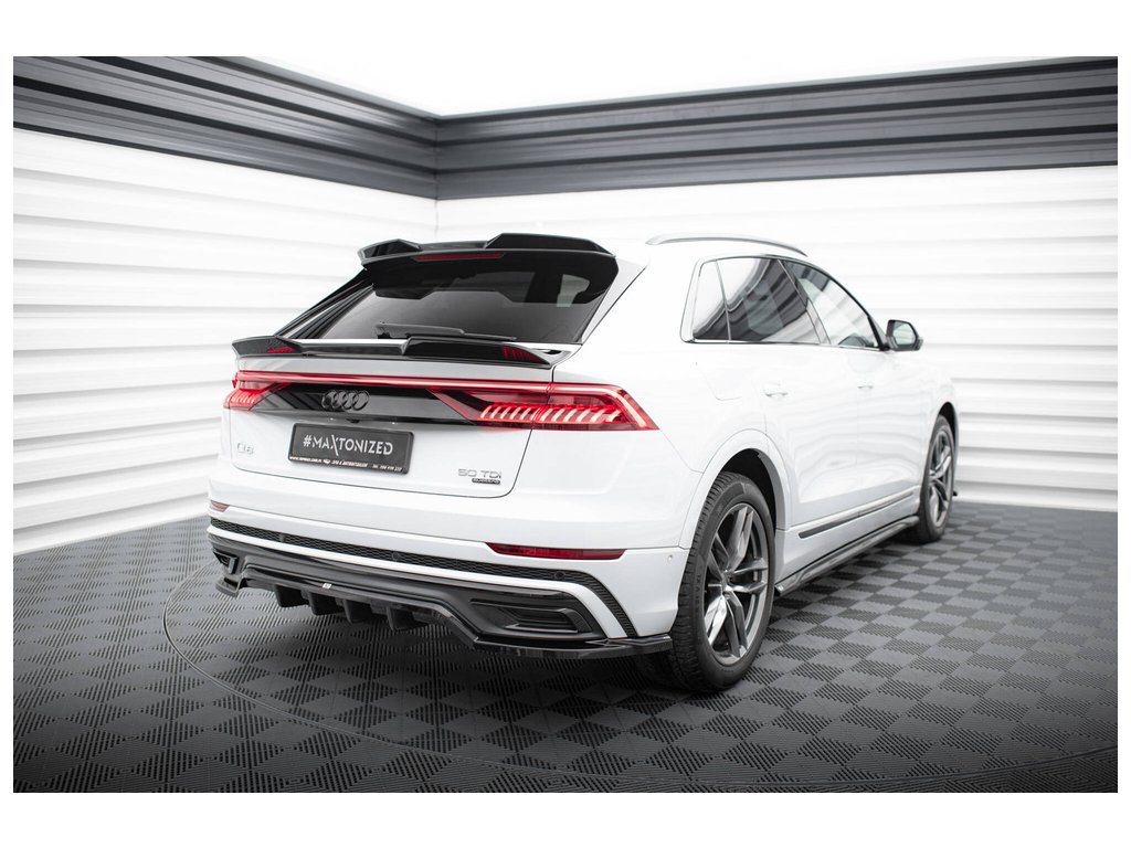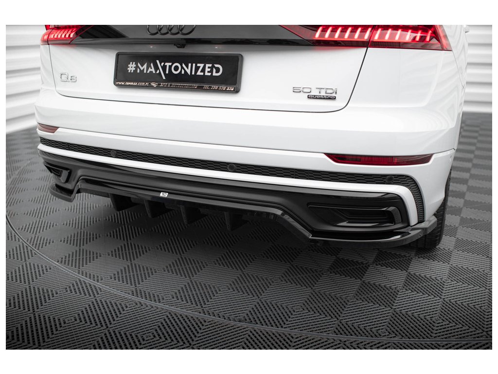 Maxton Design středový spoiler pod zadní nárazník s žebrováním pro vozidlo Audi Q8 Mk 1 . Povrchová úprava spoileru černý lesklý plast ABS.