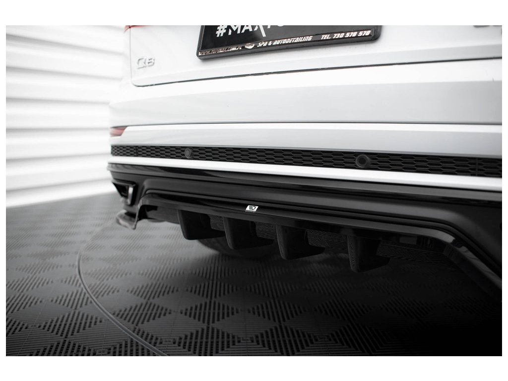 Maxton Design středový spoiler pod zadní nárazník s žebrováním pro Audi Q8 Mk 1, černý lesklý plast ABS, S-Line