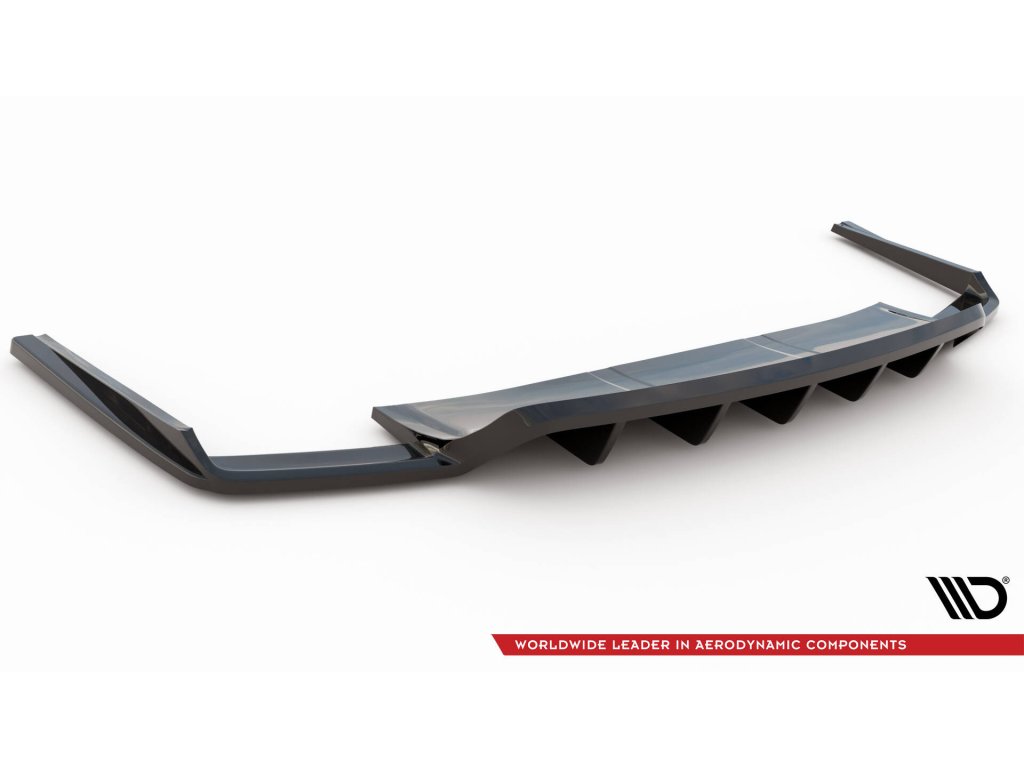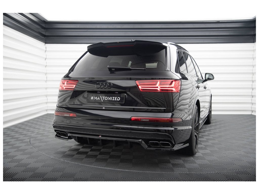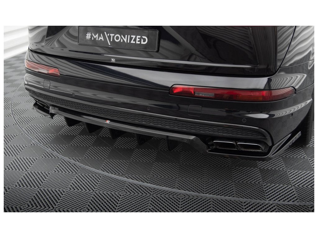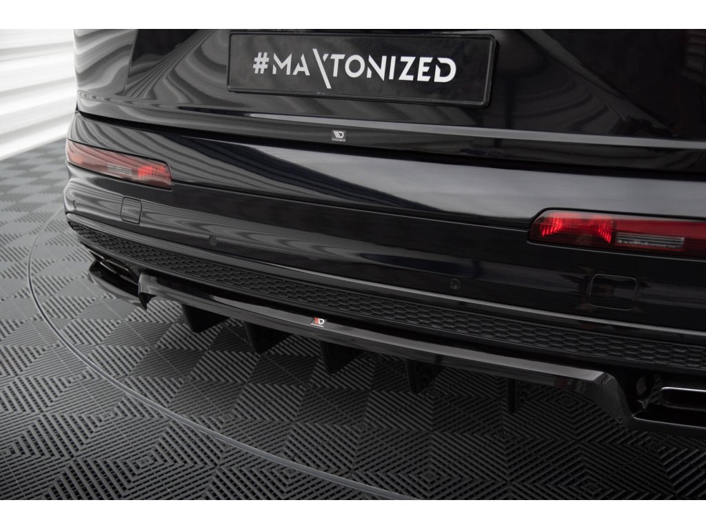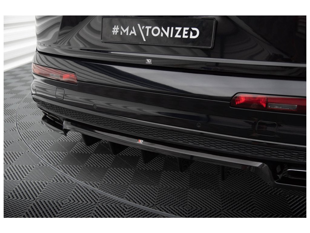 Maxton Design středový spoiler pod zadní nárazník s žebrováním pro vozidlo Audi SQ7 Mk2 . Povrchová úprava spoileru černý lesklý plast ABS.
