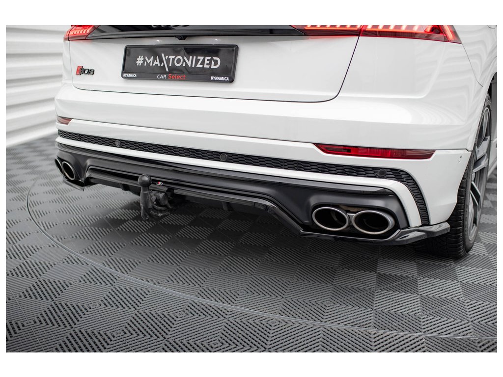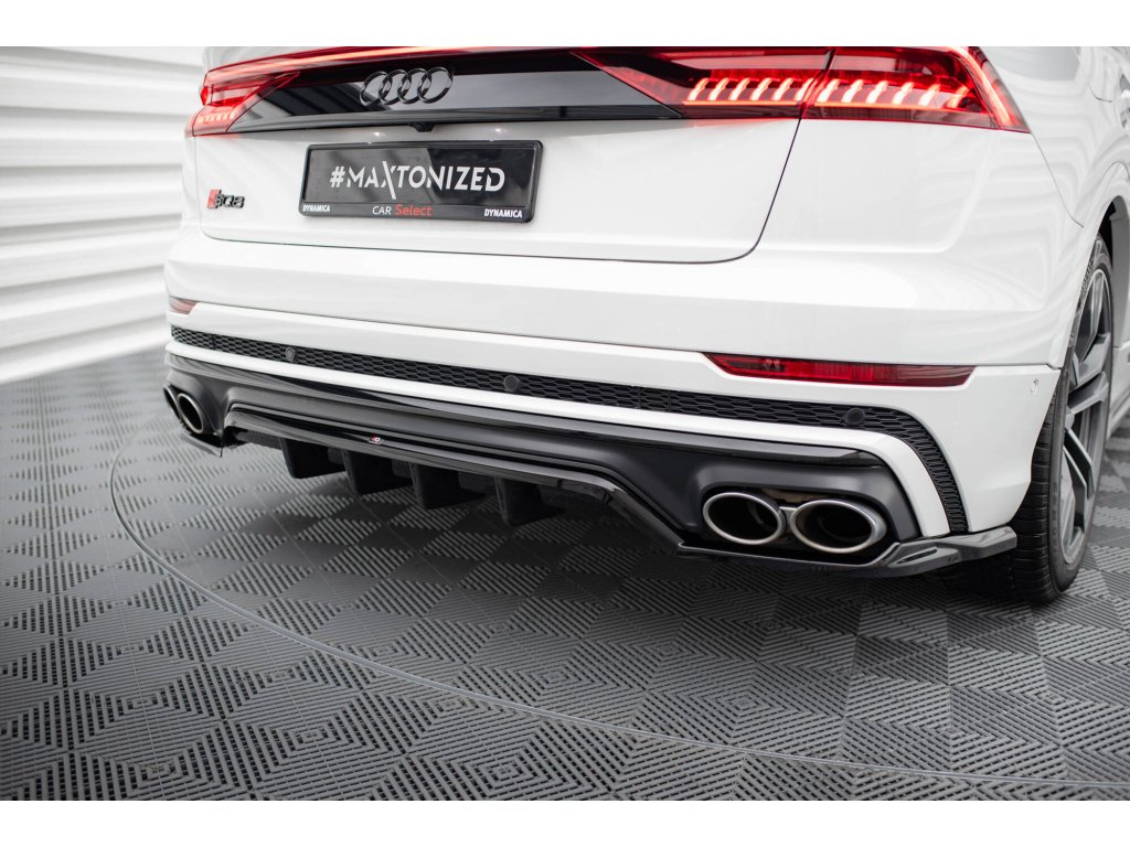 Maxton Design středový spoiler pod zadní nárazník s žebrováním pro Audi SQ8 Mk 1, černý lesklý plast ABS, S-line