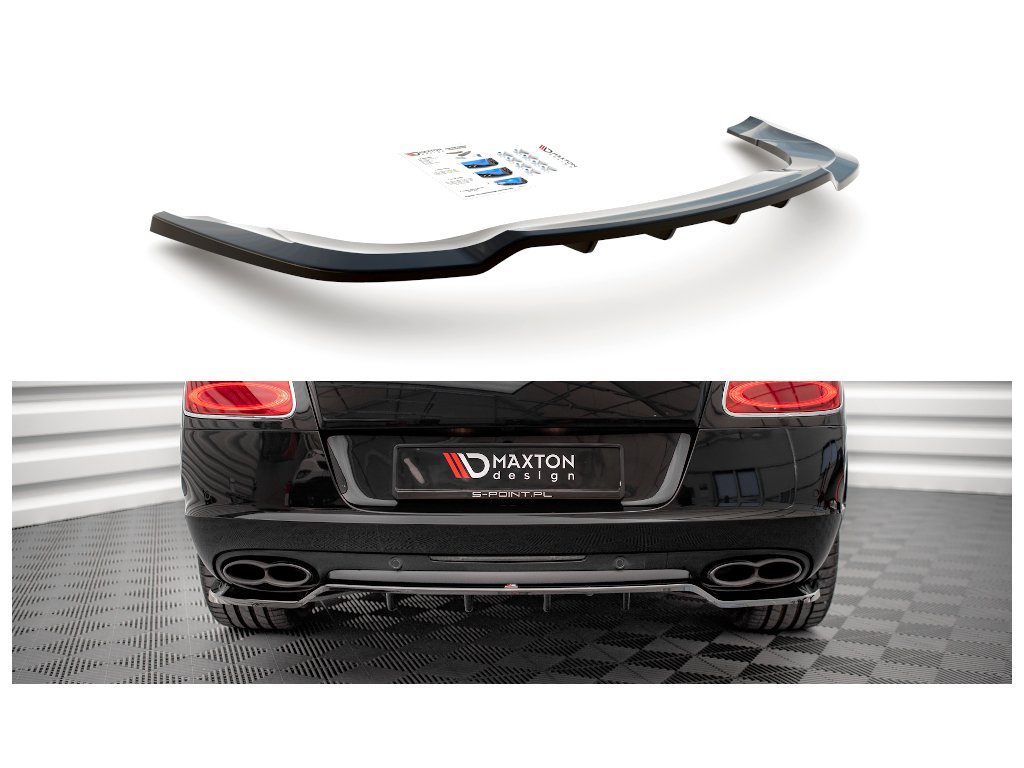 Maxton Design středový spoiler pod zadní nárazník s žebrováním pro vozidlo Bentley Continental GT Mk2 . Povrchová úprava spoileru carbon-Look.