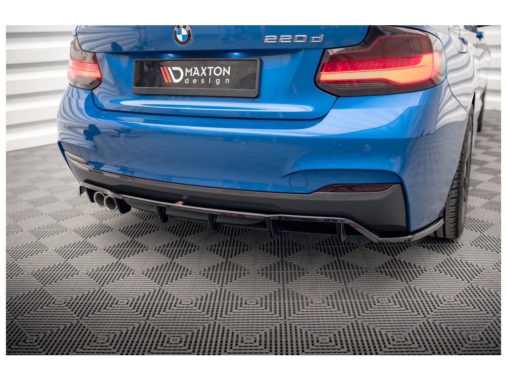 Maxton Design středový spoiler pod zadní nárazník s žebrováním pro BMW řada 2 F22, černý lesklý plast ABS, M-pack