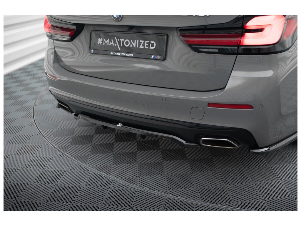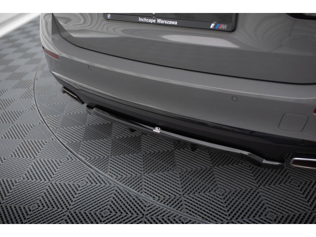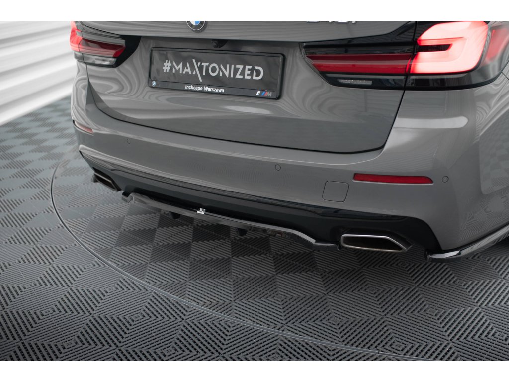 Maxton Design středový spoiler pod zadní nárazník s žebrováním pro BMW řada 5 G30 FL, G31 FL, černý lesklý plast ABS