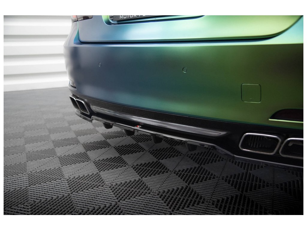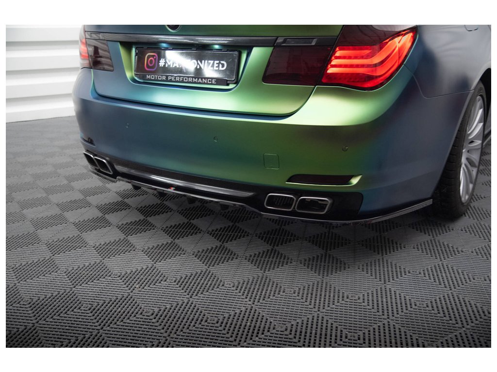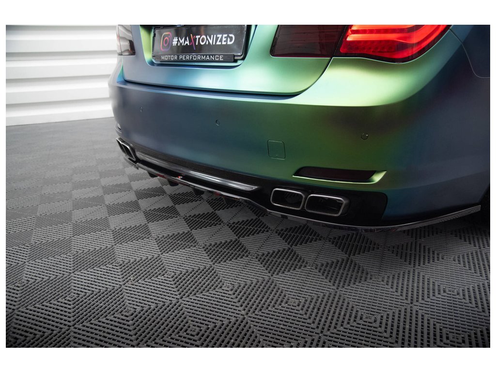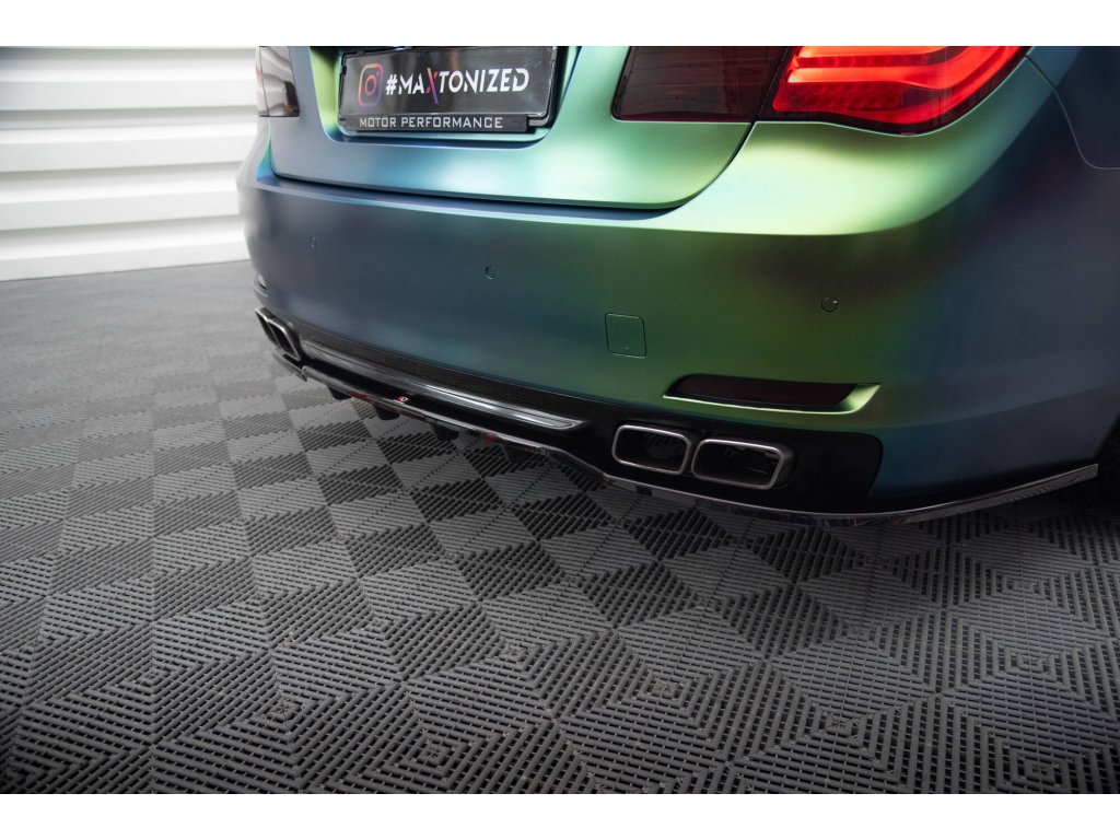 Maxton Design středový spoiler pod zadní nárazník s žebrováním pro BMW řada 7 F01 Standard, černý lesklý plast ABS
