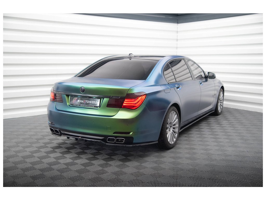 Maxton Design středový spoiler pod zadní nárazník s žebrováním pro vozidlo BMW řada 7 F01 Standard . Povrchová úprava spoileru černý lesklý plast ABS.