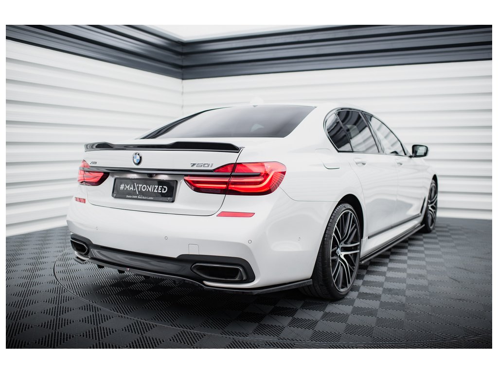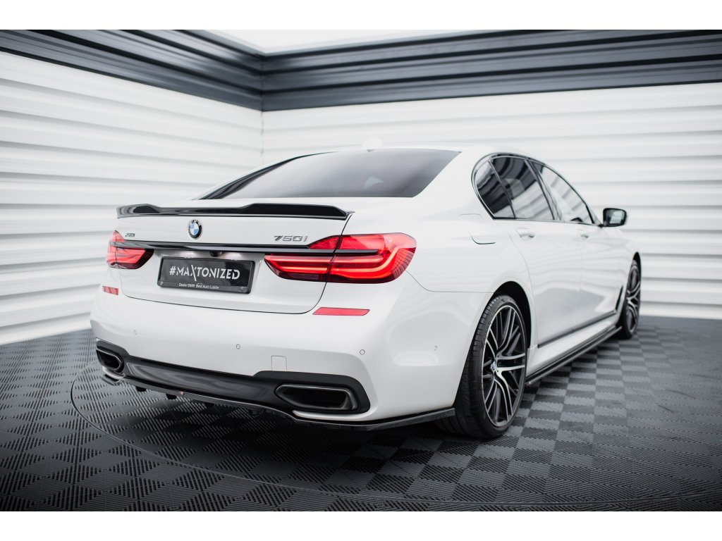 Maxton Design středový spoiler pod zadní nárazník s žebrováním pro vozidlo BMW řada 7 G11 . Povrchová úprava spoileru černý lesklý plast ABS.