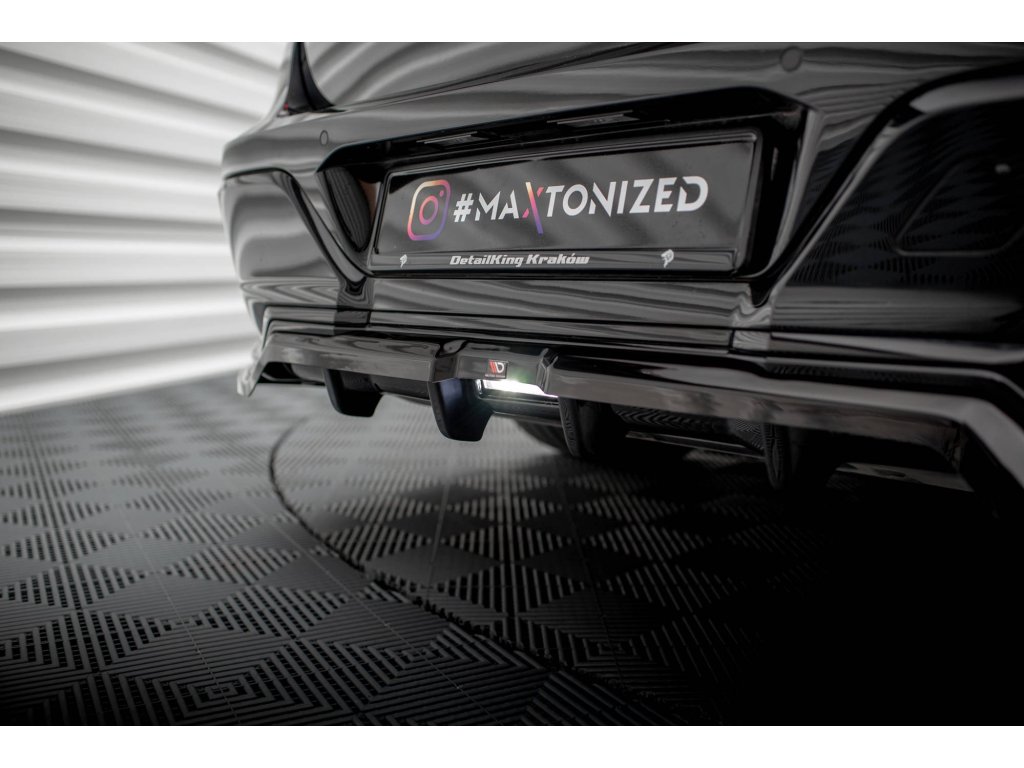 Maxton Design středový spoiler pod zadní nárazník s žebrováním pro vozidlo BMW řada 7 G70 M-Pack . Povrchová úprava spoileru carbon-Look.