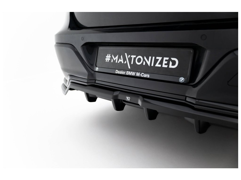 Maxton Design středový spoiler pod zadní nárazník s žebrováním pro BMW řada 7 G70 M-Pack, černý lesklý plast ABS