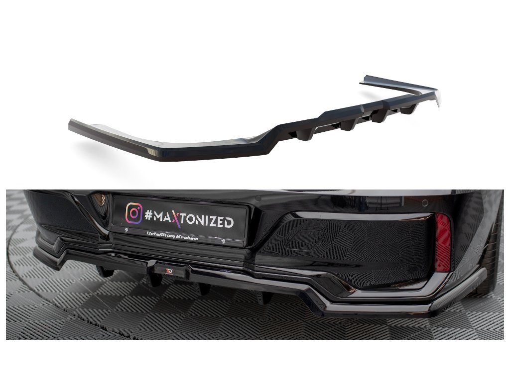 Maxton Design středový spoiler pod zadní nárazník s žebrováním pro vozidlo BMW řada 7 G70 M-Pack . Povrchová úprava spoileru černý lesklý plast ABS.