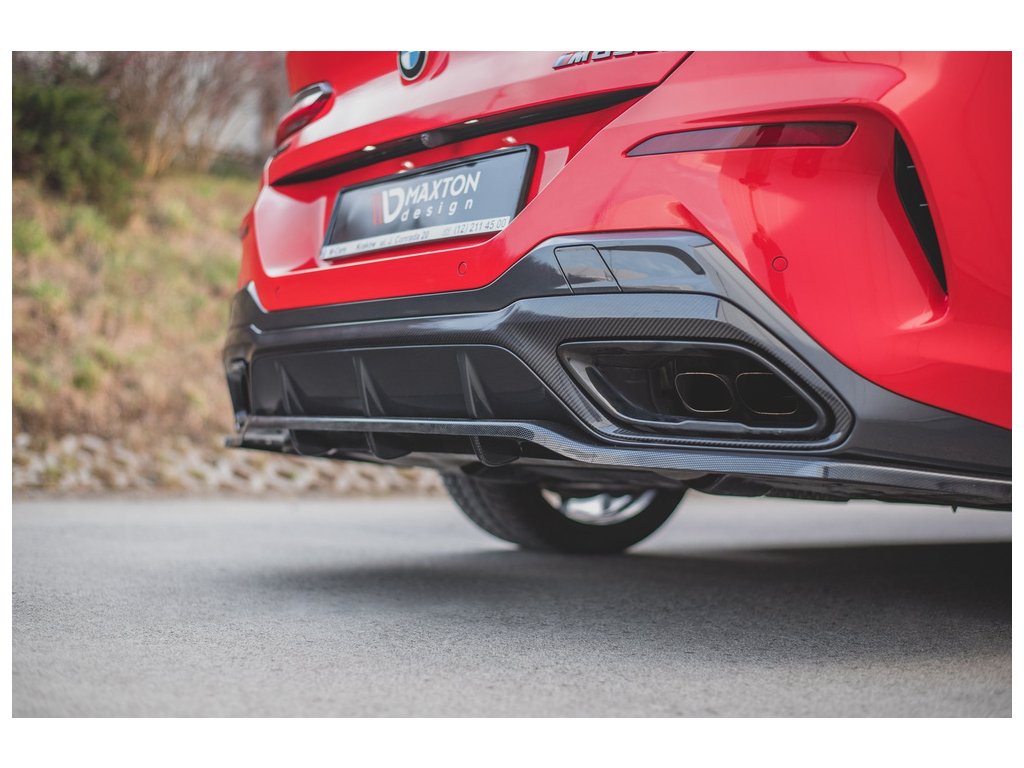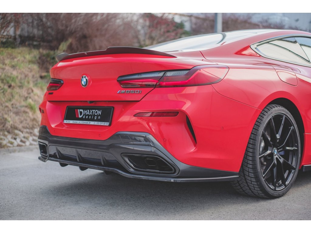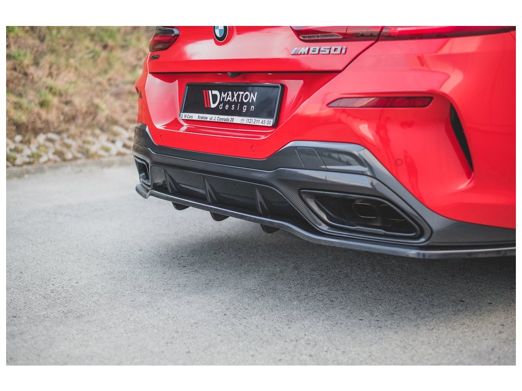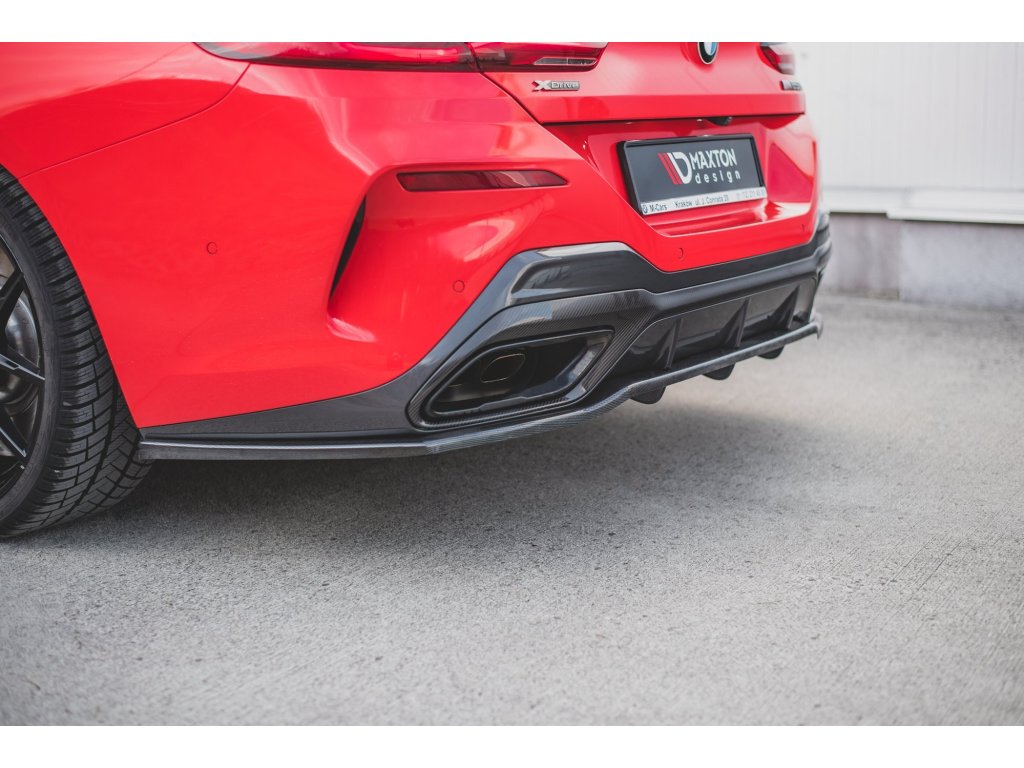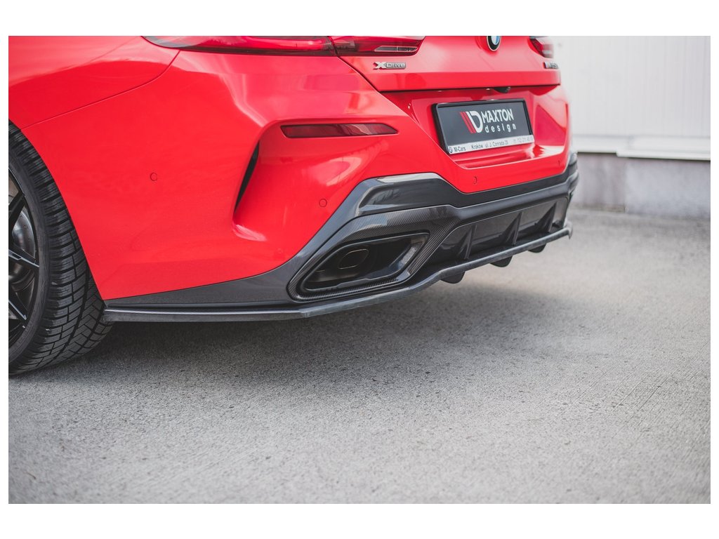 Maxton Design středový spoiler pod zadní nárazník s žebrováním pro vozidlo BMW řada 8 Coupe/G15 . Povrchová úprava spoileru černý lesklý plast ABS.