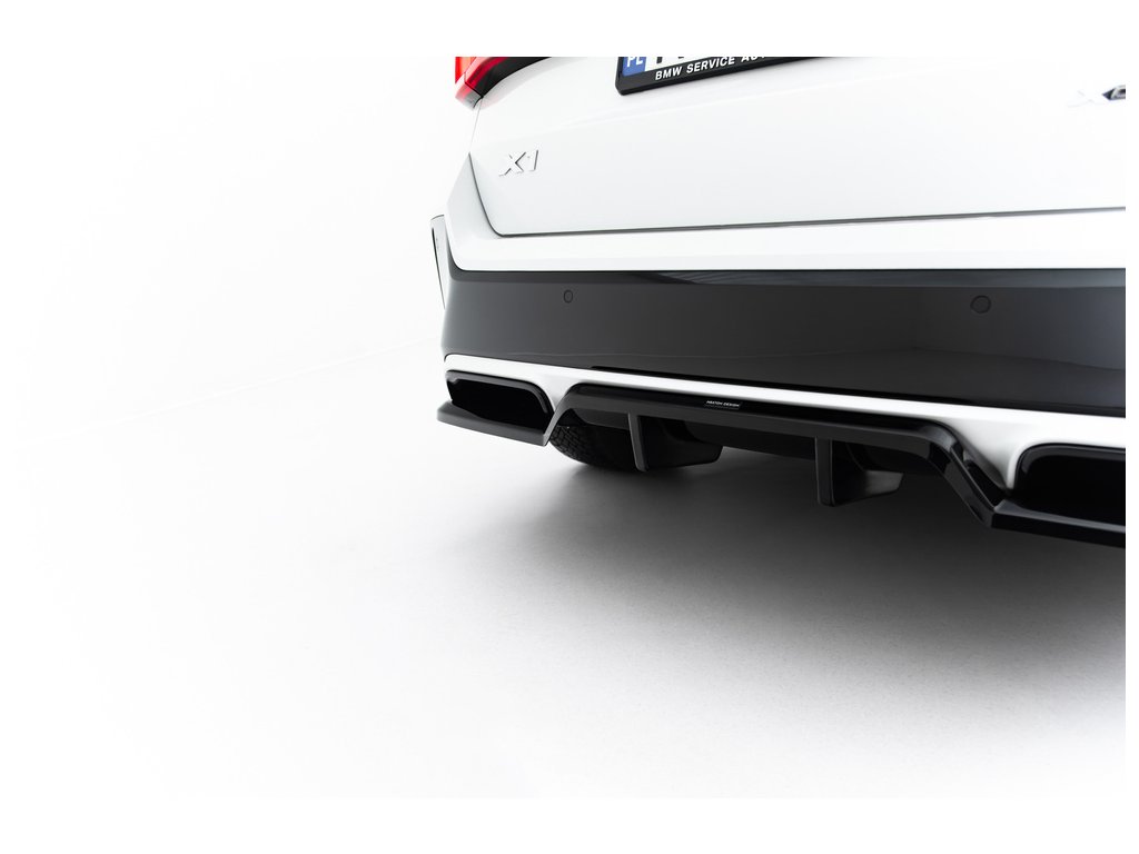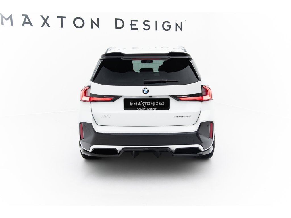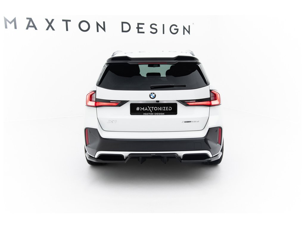 Maxton Design středový spoiler pod zadní nárazník s žebrováním pro BMW X1 U11 M-Pack, černý lesklý plast ABS