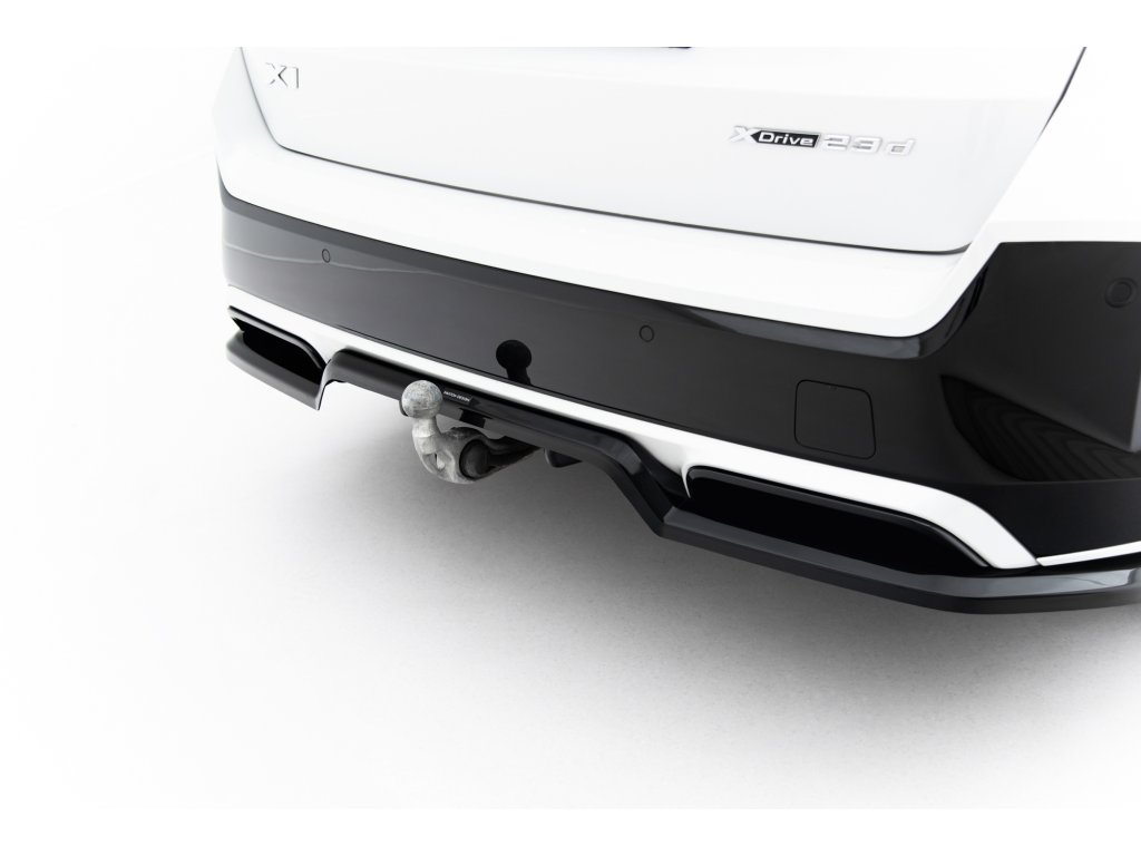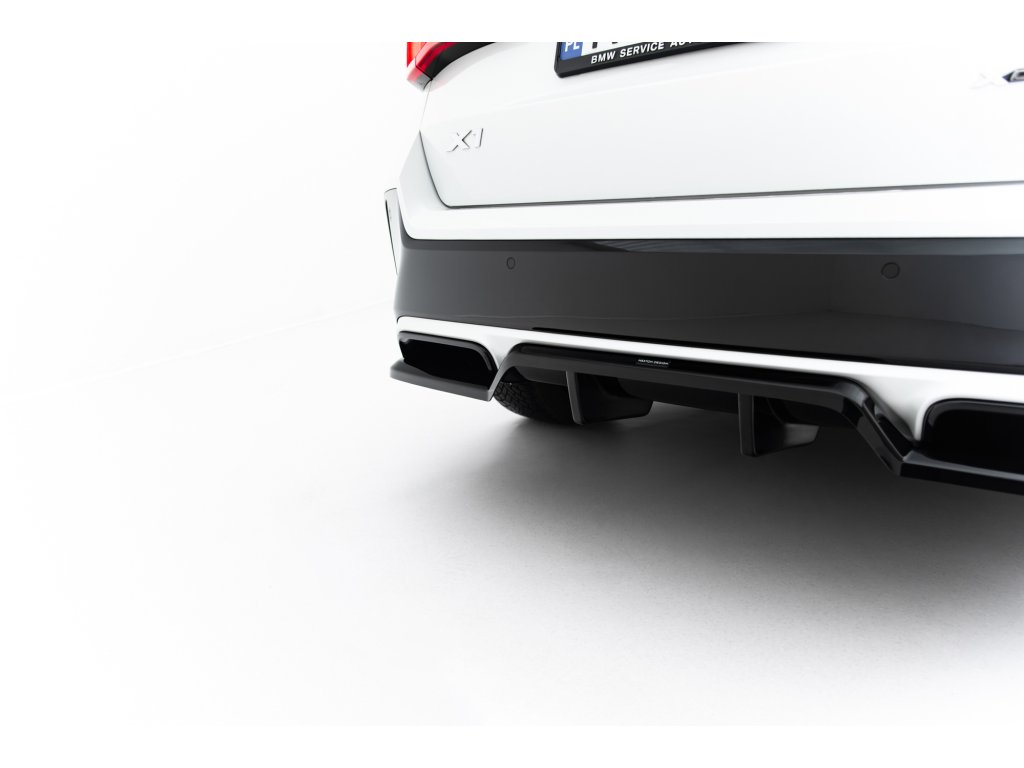 Maxton Design středový spoiler pod zadní nárazník s žebrováním pro vozidlo BMW X1 U11 M-Pack . Povrchová úprava spoileru černý lesklý plast ABS.