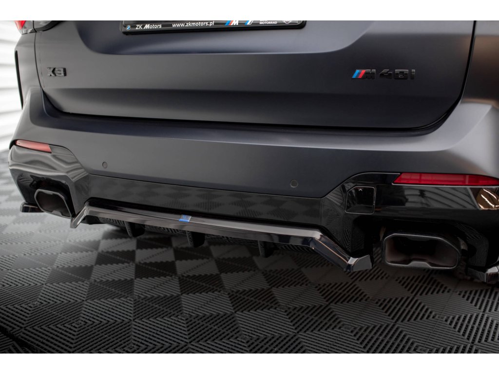 Maxton Design středový spoiler pod zadní nárazník s žebrováním pro vozidlo BMW X3 G01 Facelift M-Pack . Povrchová úprava spoileru carbon-Look.