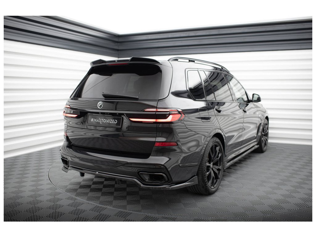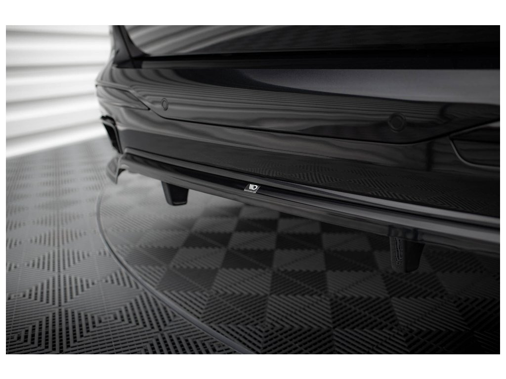 Maxton Design středový spoiler pod zadní nárazník s žebrováním pro vozidlo BMW X7 G07 Facelift M-Pack . Povrchová úprava spoileru černý lesklý plast ABS.