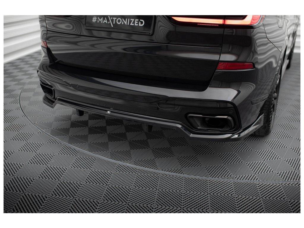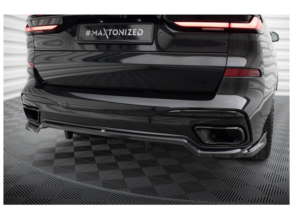 Maxton Design středový spoiler pod zadní nárazník s žebrováním pro BMW X7 G07 Facelift M-Pack, černý lesklý plast ABS