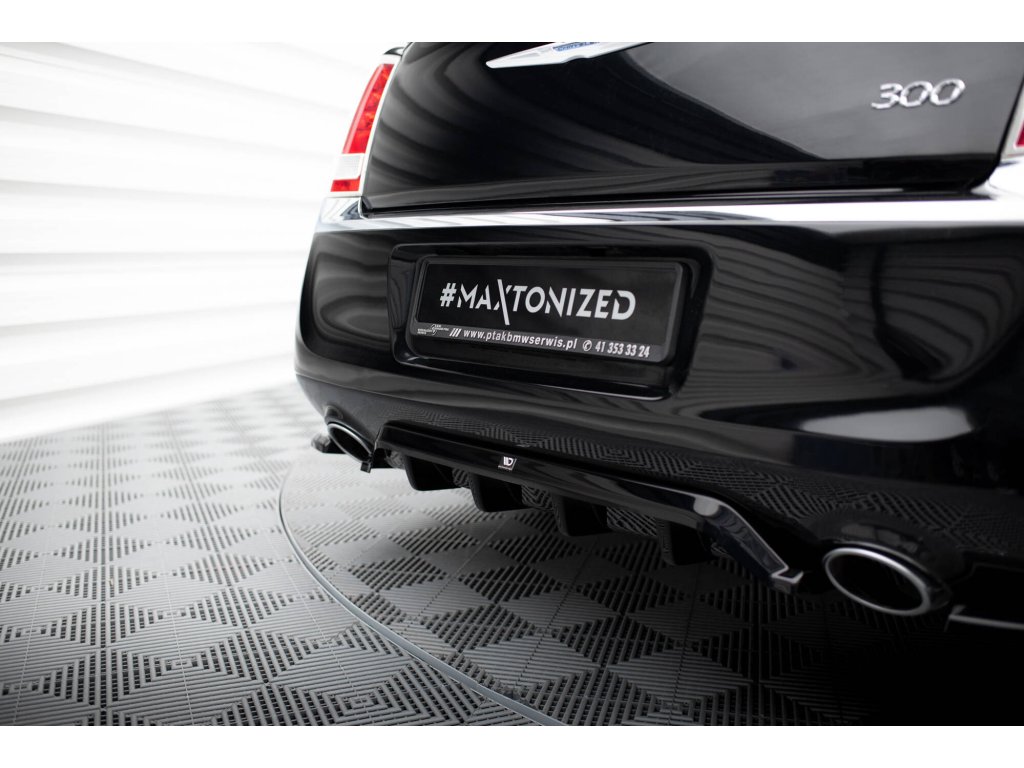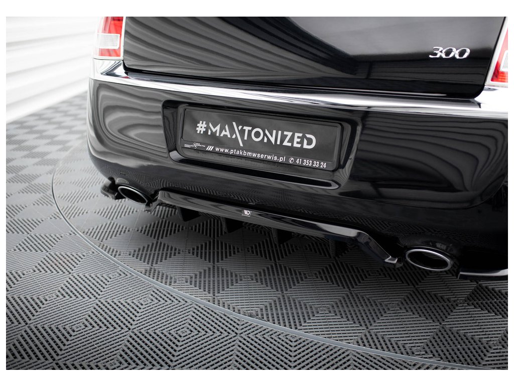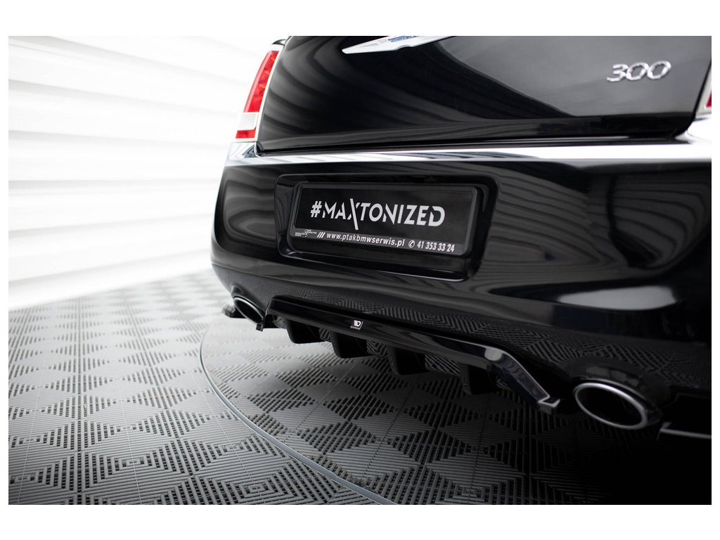 Maxton Design středový spoiler pod zadní nárazník s žebrováním pro vozidlo Chrysler 300 Mk2 . Povrchová úprava spoileru černý lesklý plast ABS.