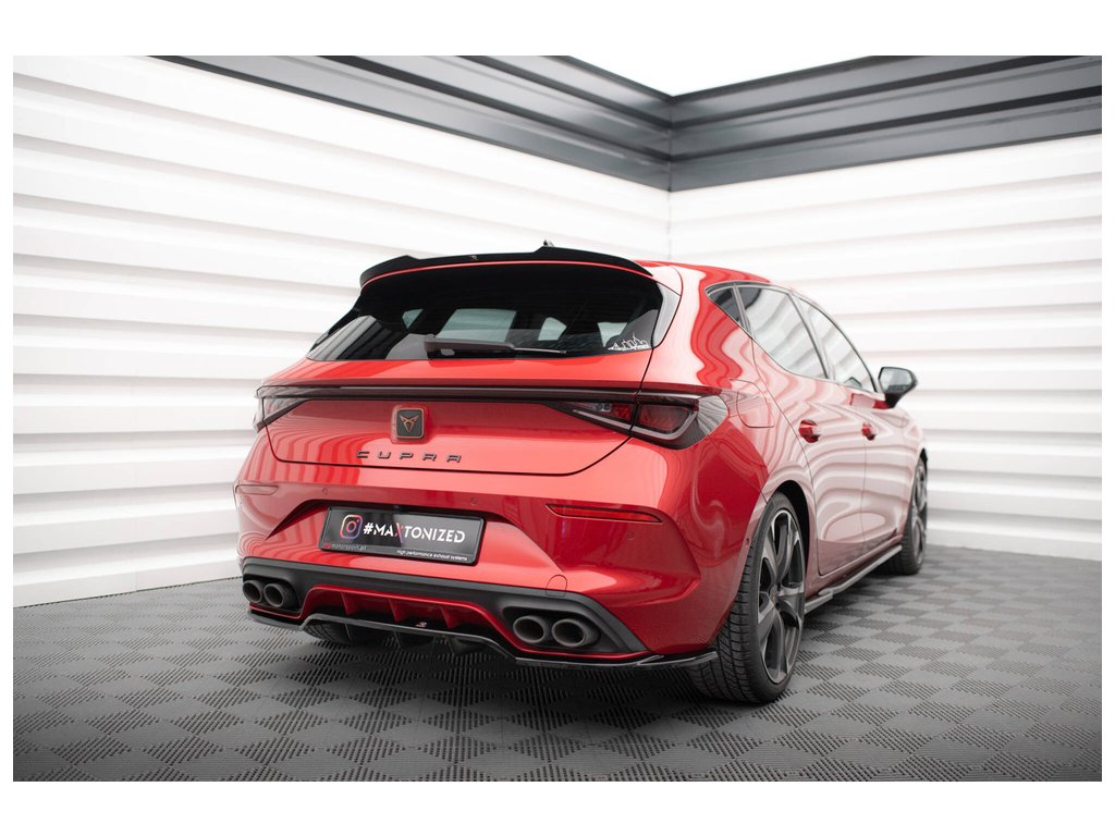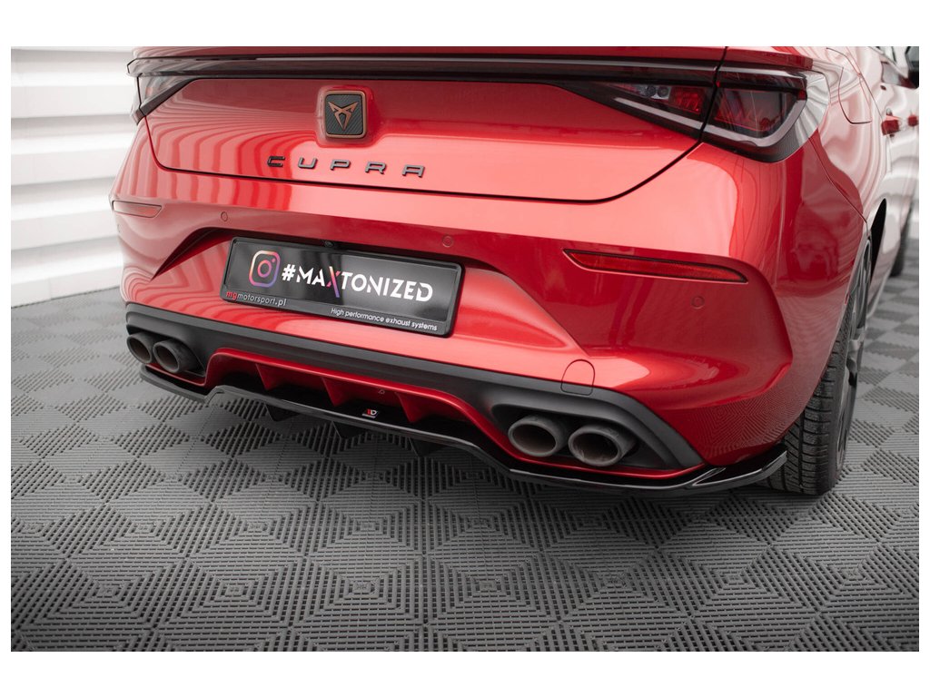 Maxton Design středový spoiler pod zadní nárazník s žebrováním pro vozidlo Cupra Leon Mk1 . Povrchová úprava spoileru černý lesklý plast ABS.